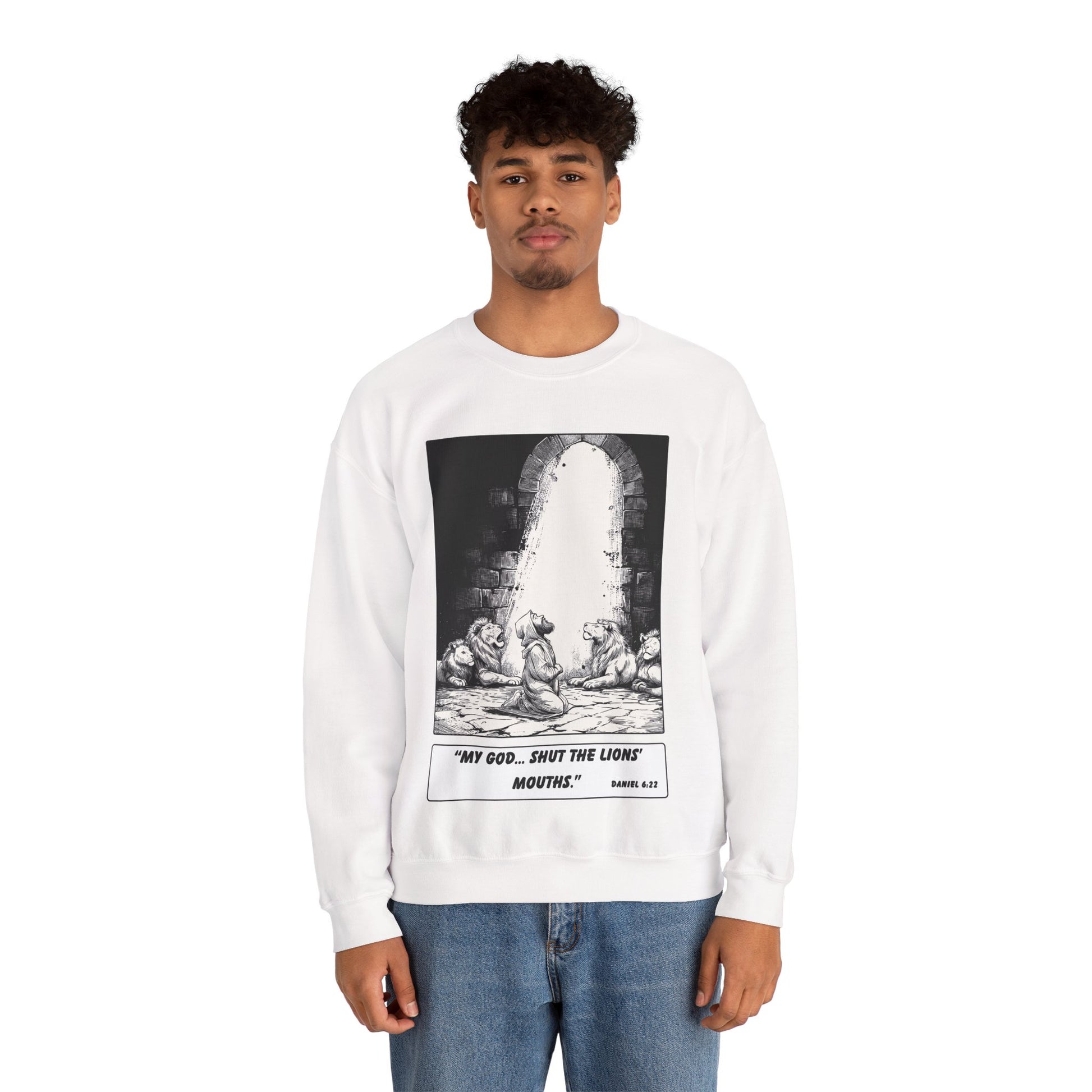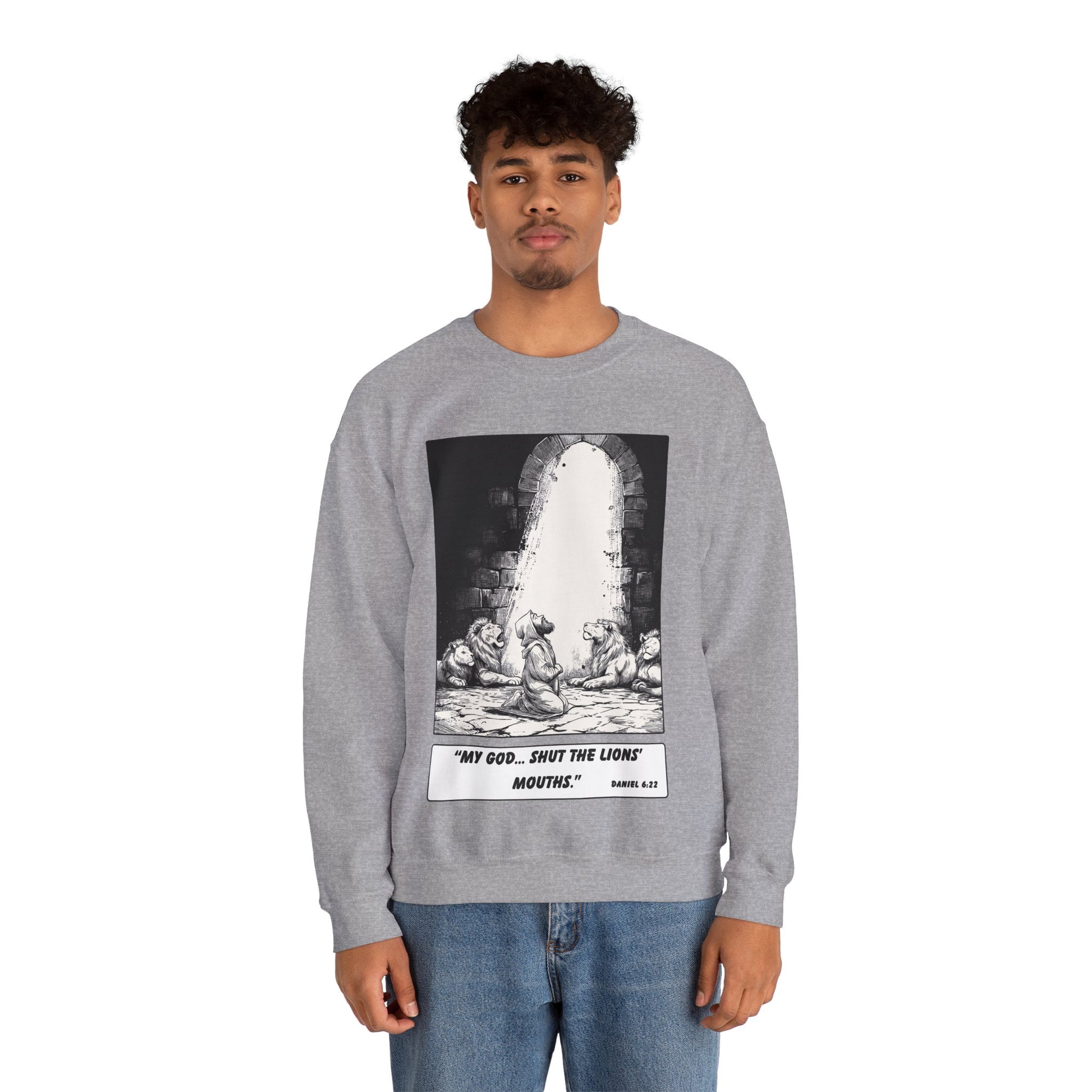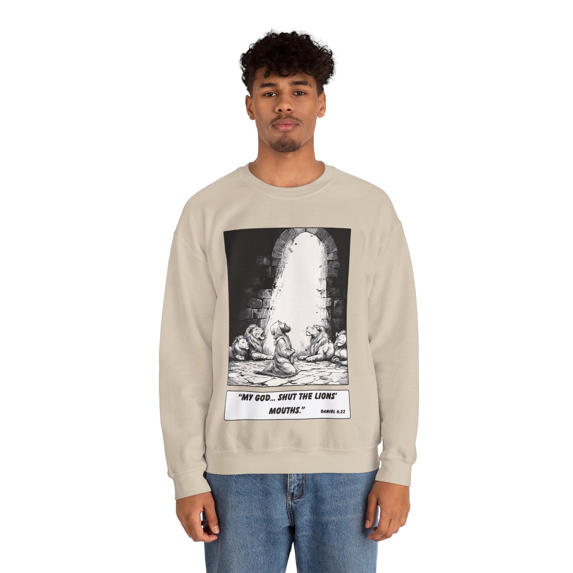 Daniel in the Lions’ Den Sweater – Black & White Faith Ink Panel (Dan 6:22)