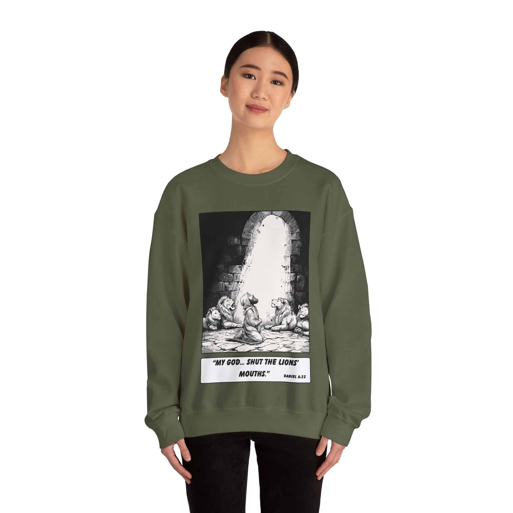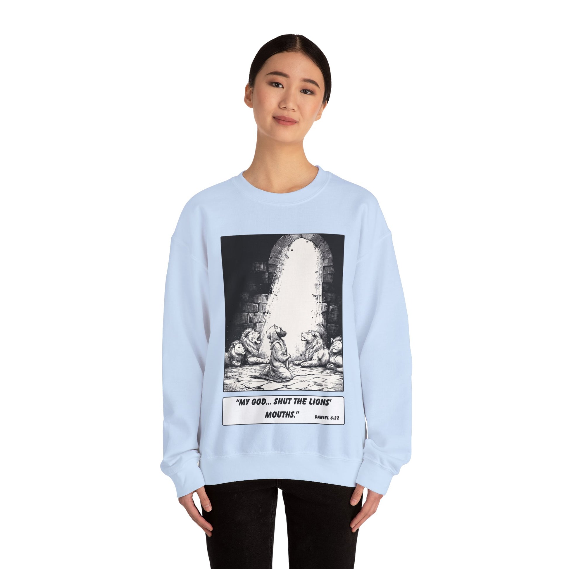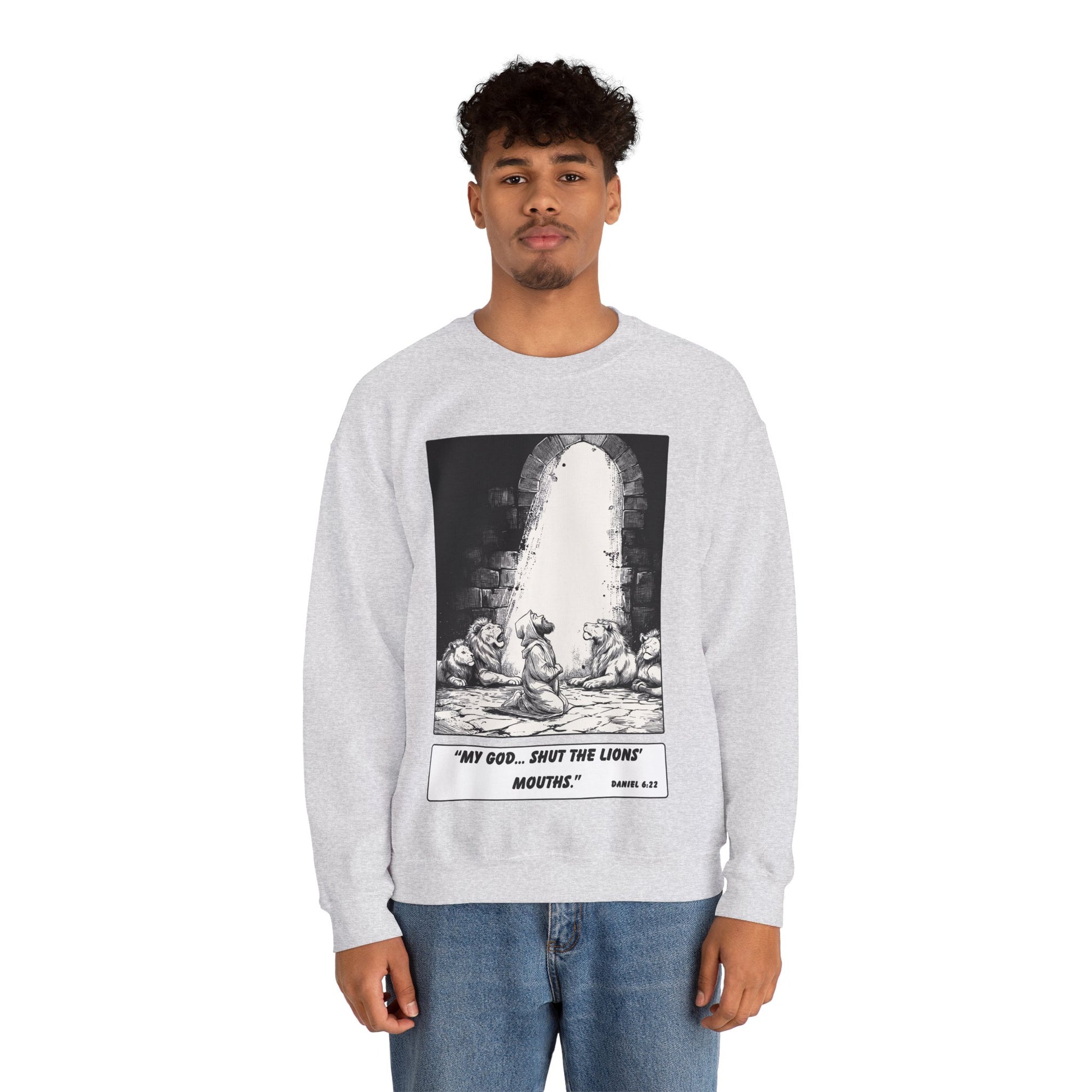 Daniel in the Lions’ Den Sweater – Black & White Faith Ink Panel (Dan 6:22)