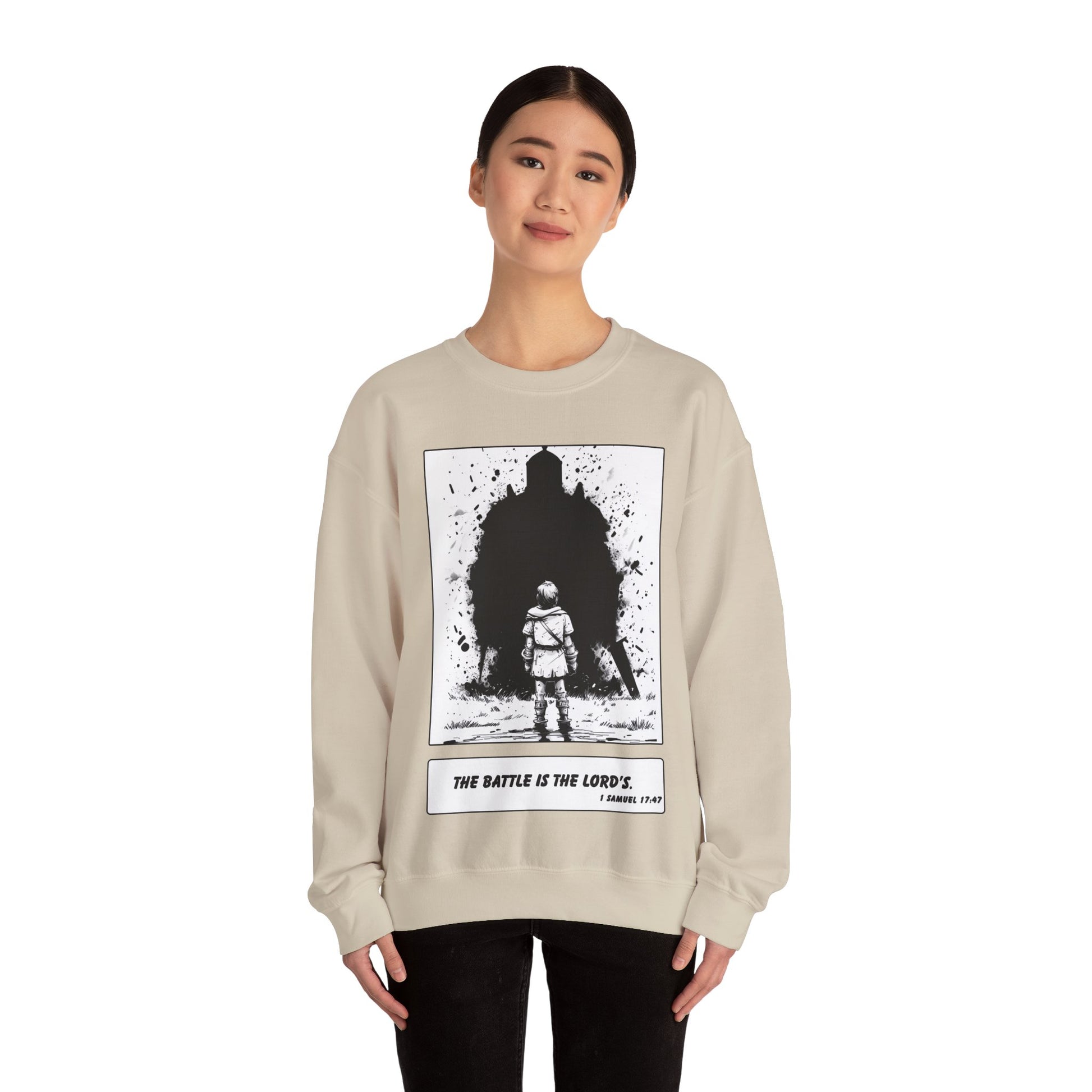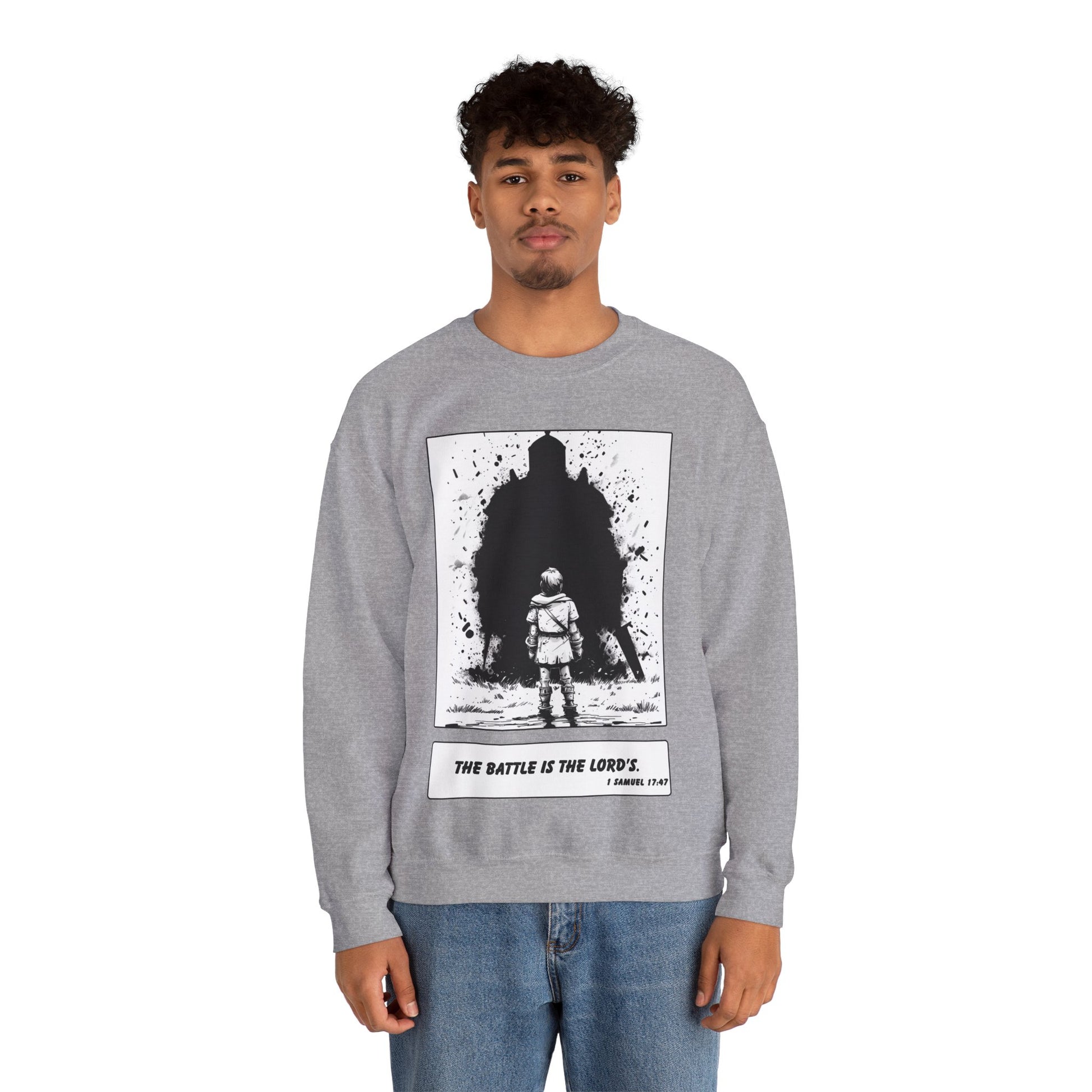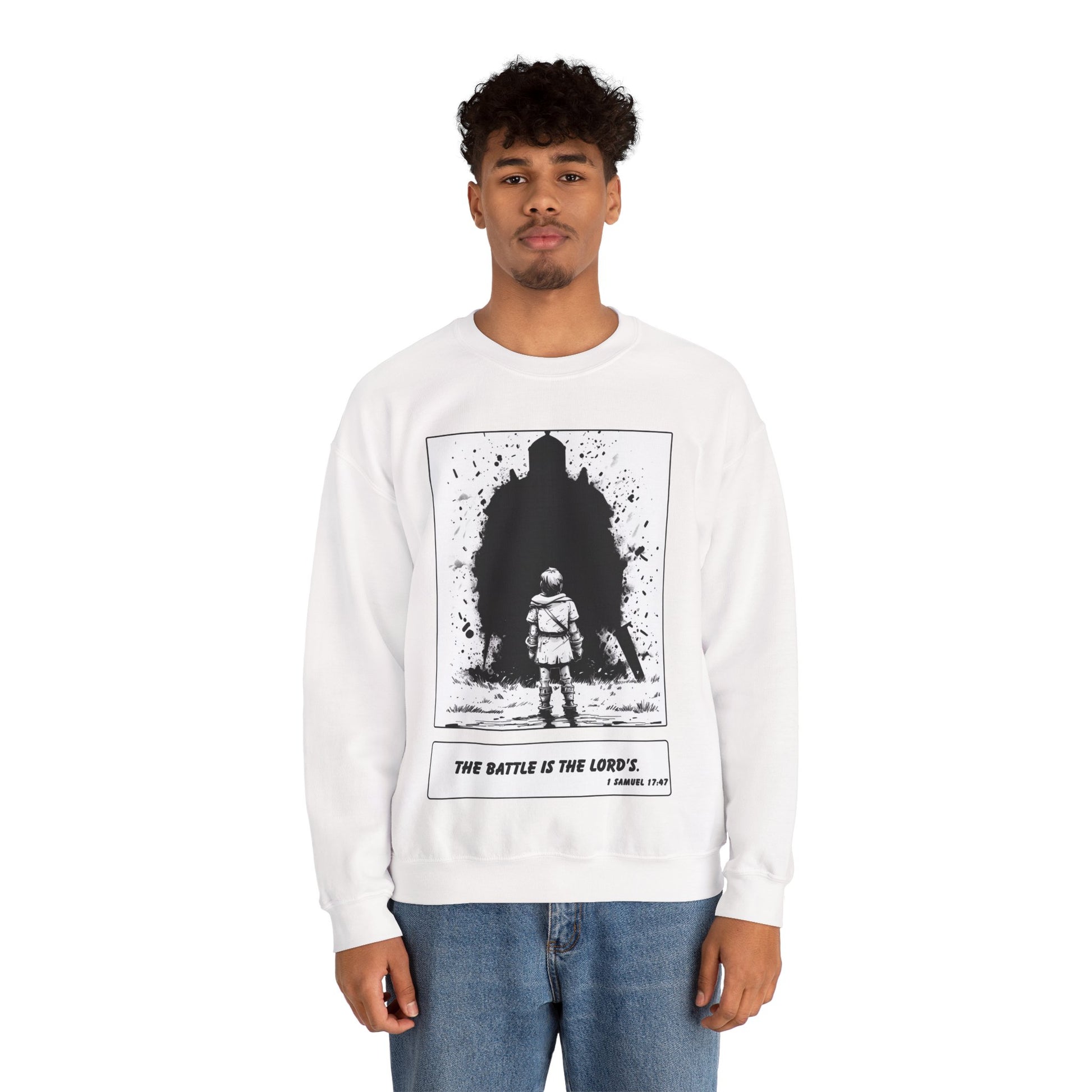 David & Goliath Sweater – Black & White Faith Ink Panel (1 Sam 17:47)