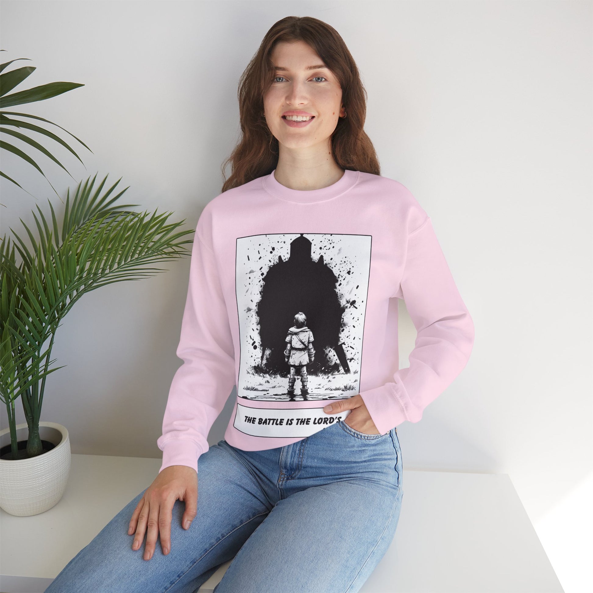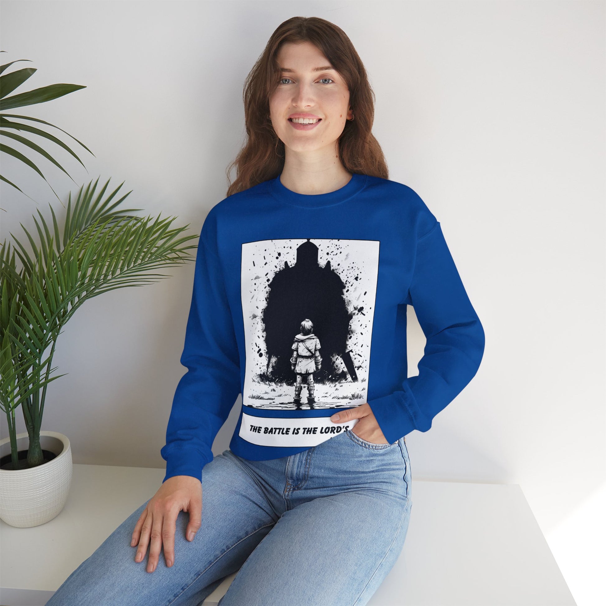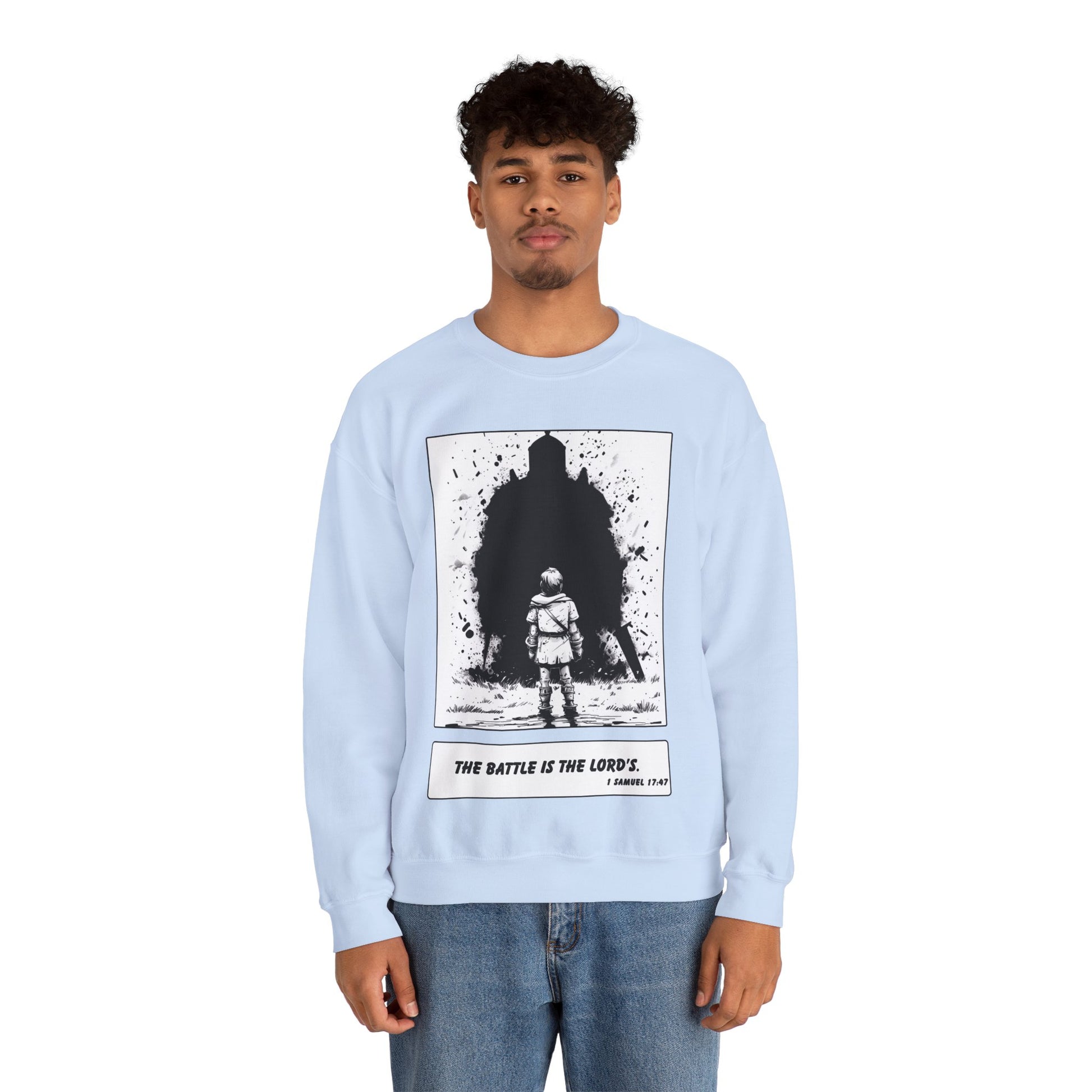 David & Goliath Sweater – Black & White Faith Ink Panel (1 Sam 17:47)