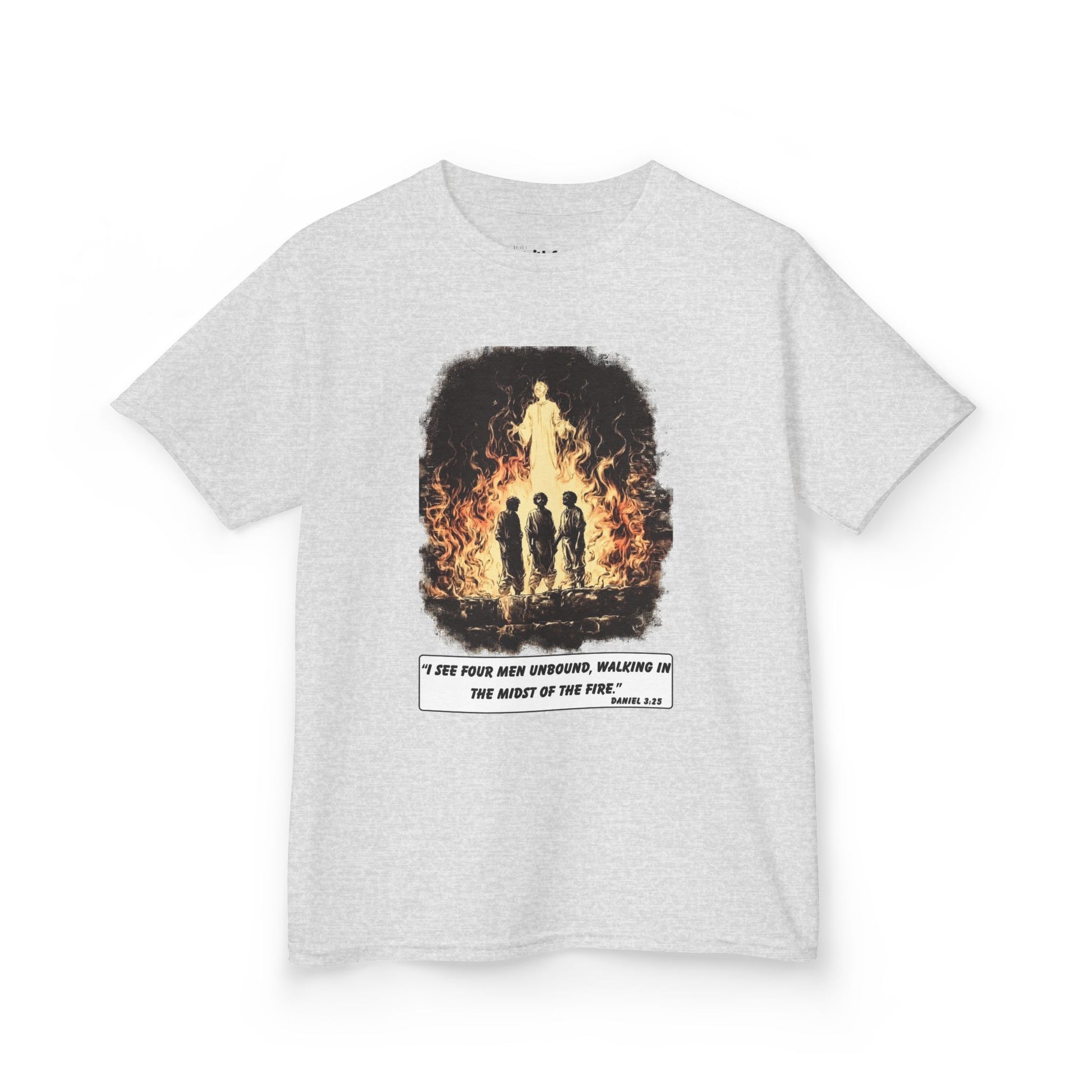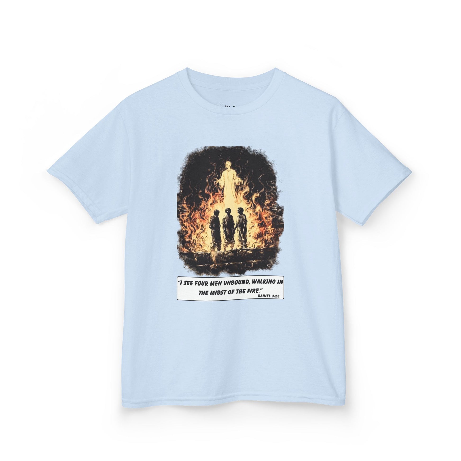 Not every miracle is an exit; sometimes it’s company. This design glows with that truth—three faithful, one more in the heat. No smoke story, just presence. It’s for hospital hallways, exam weeks, hard conversations, and nights spent staying instead of running. You are not alone in the temperature you didn’t choose. Wear this as a reminder for yourself and a signal to someone watching: there’s a Fourth in the fire, and His nearness changes everything. Courage doesn’t always cool the room; it anchors the soul.