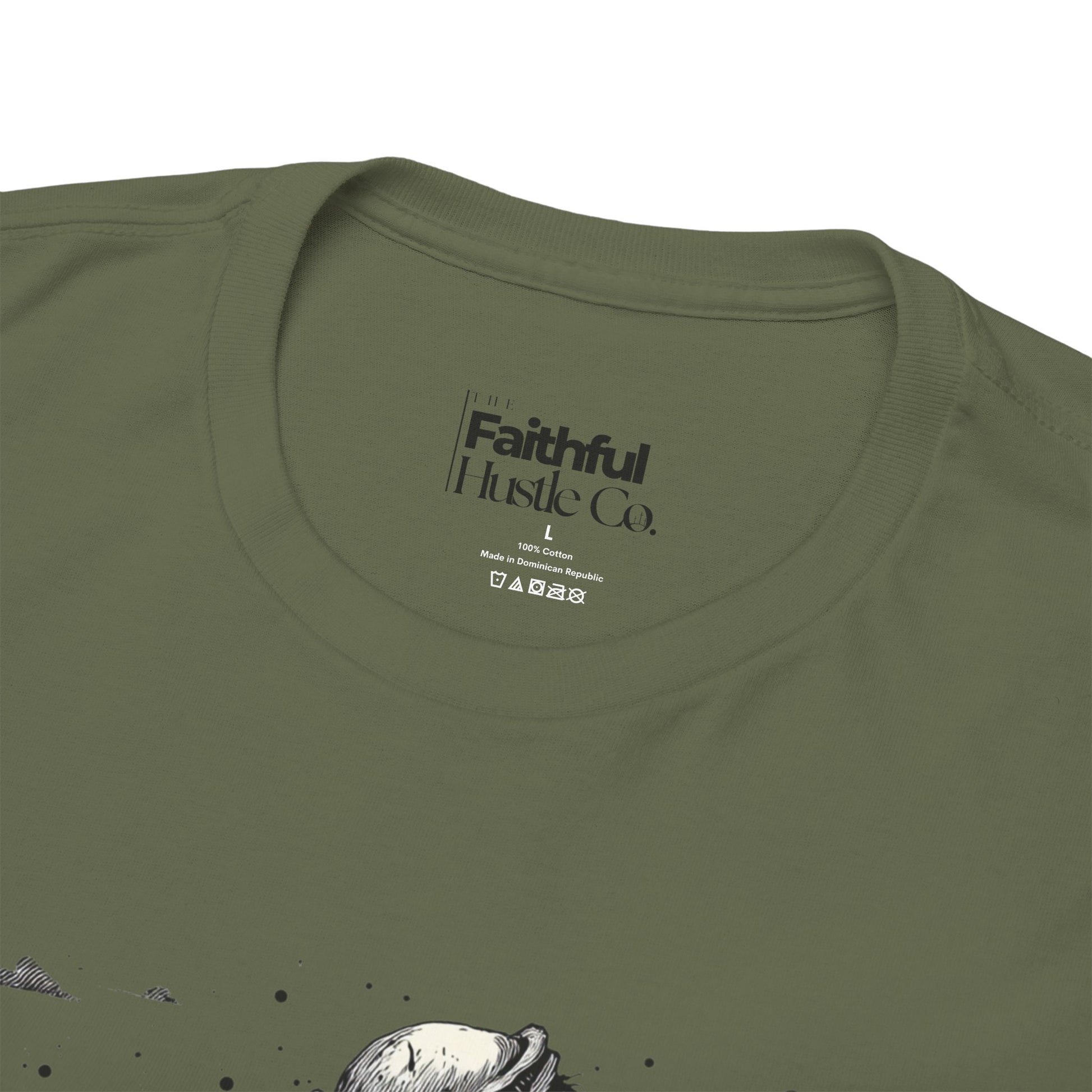 A timeless picture of care and calling. This Faith Ink Panel pairs clean contours with airy halftone so it wears as well on Sabbath as it does midweek.