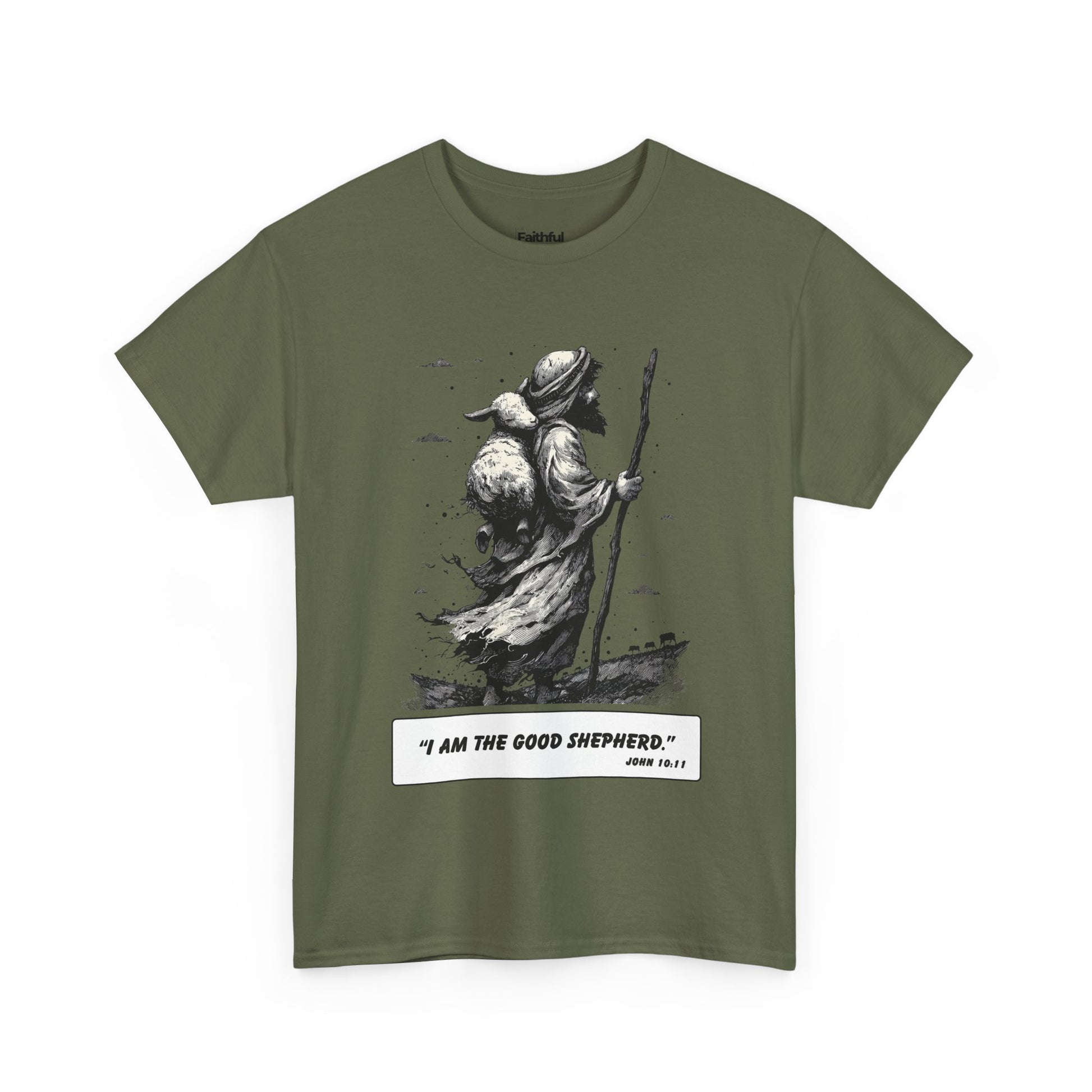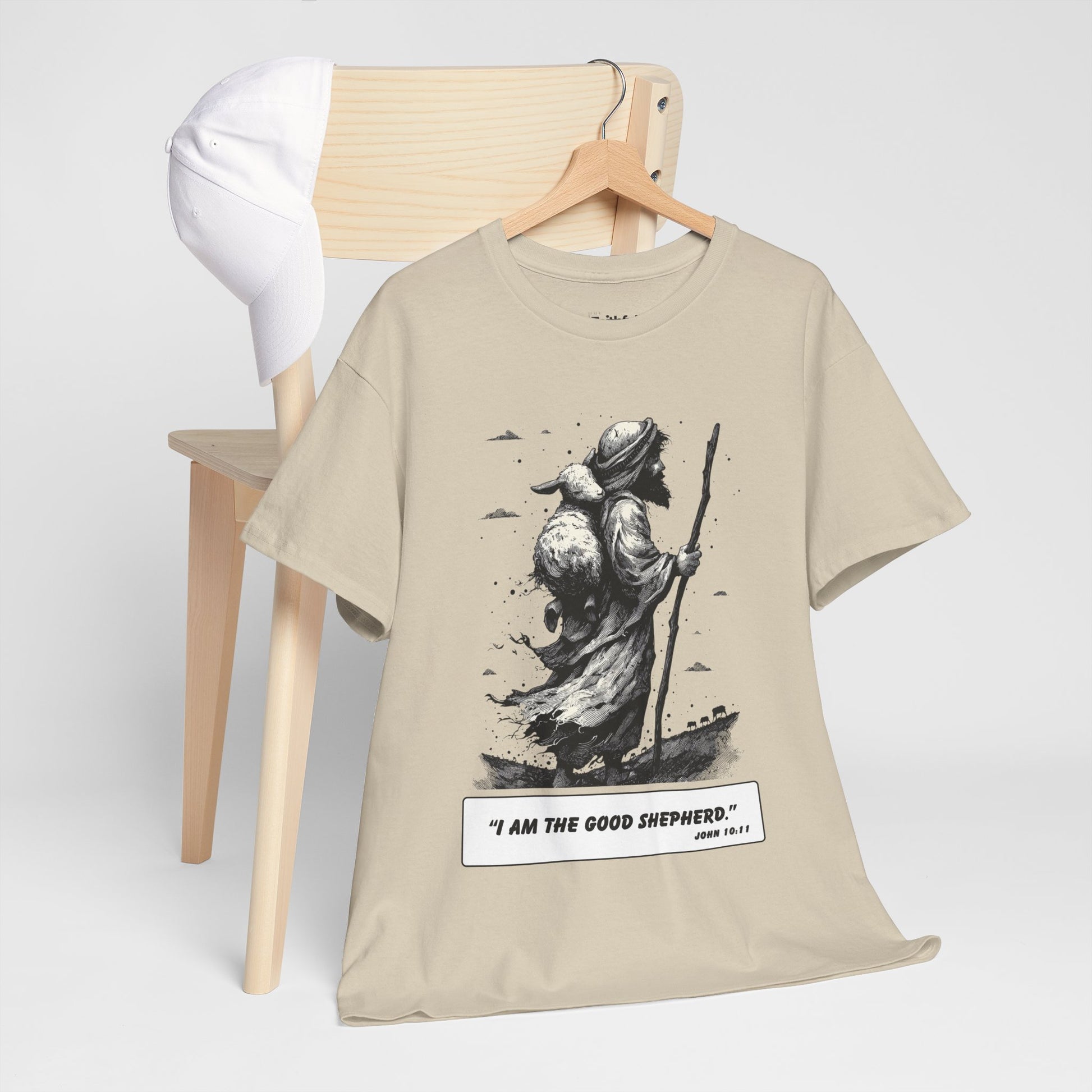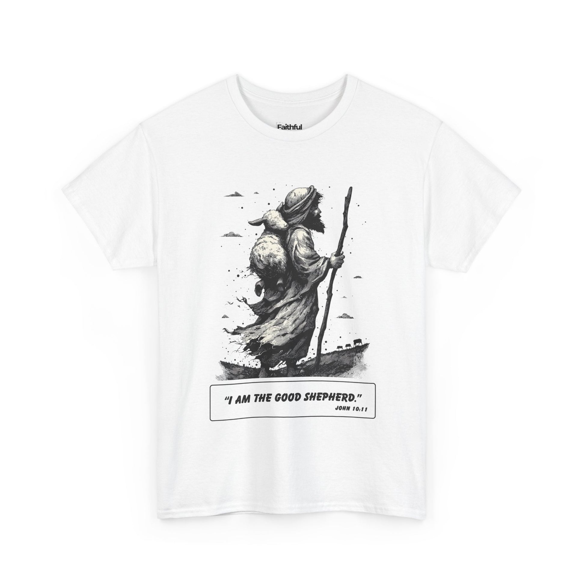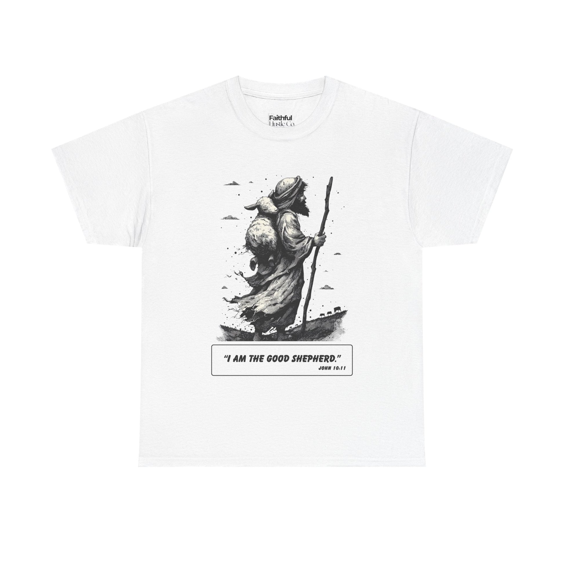 Good Shepherd Tee – Black & White Faith Ink Panel (John 10:11)