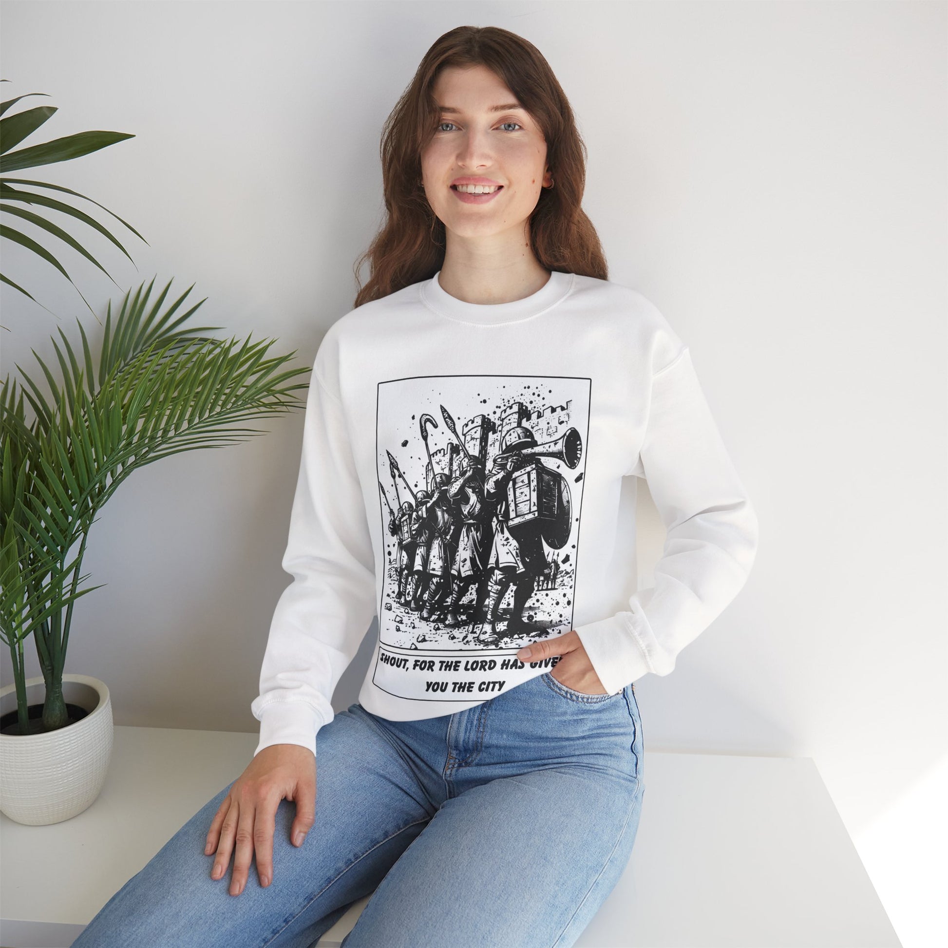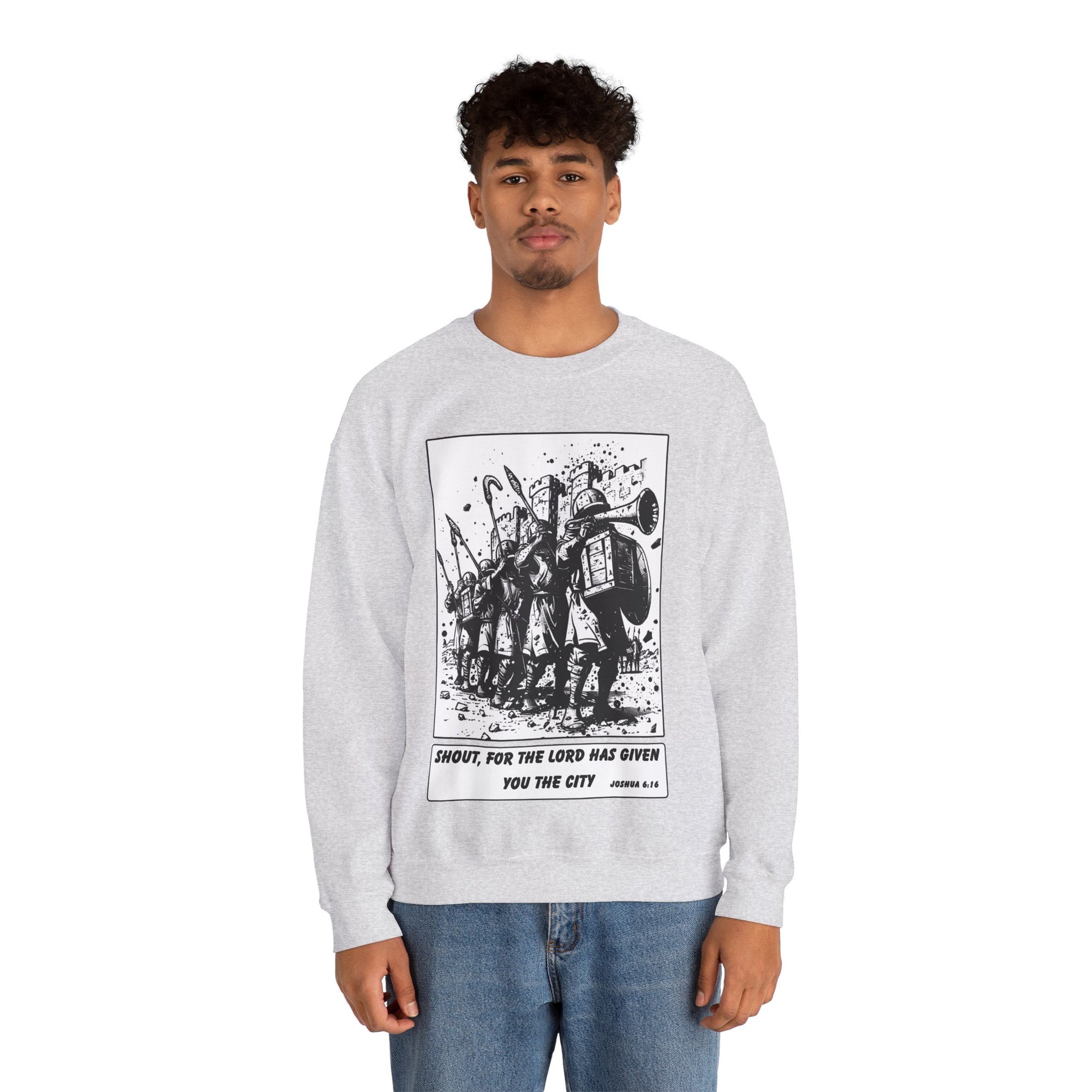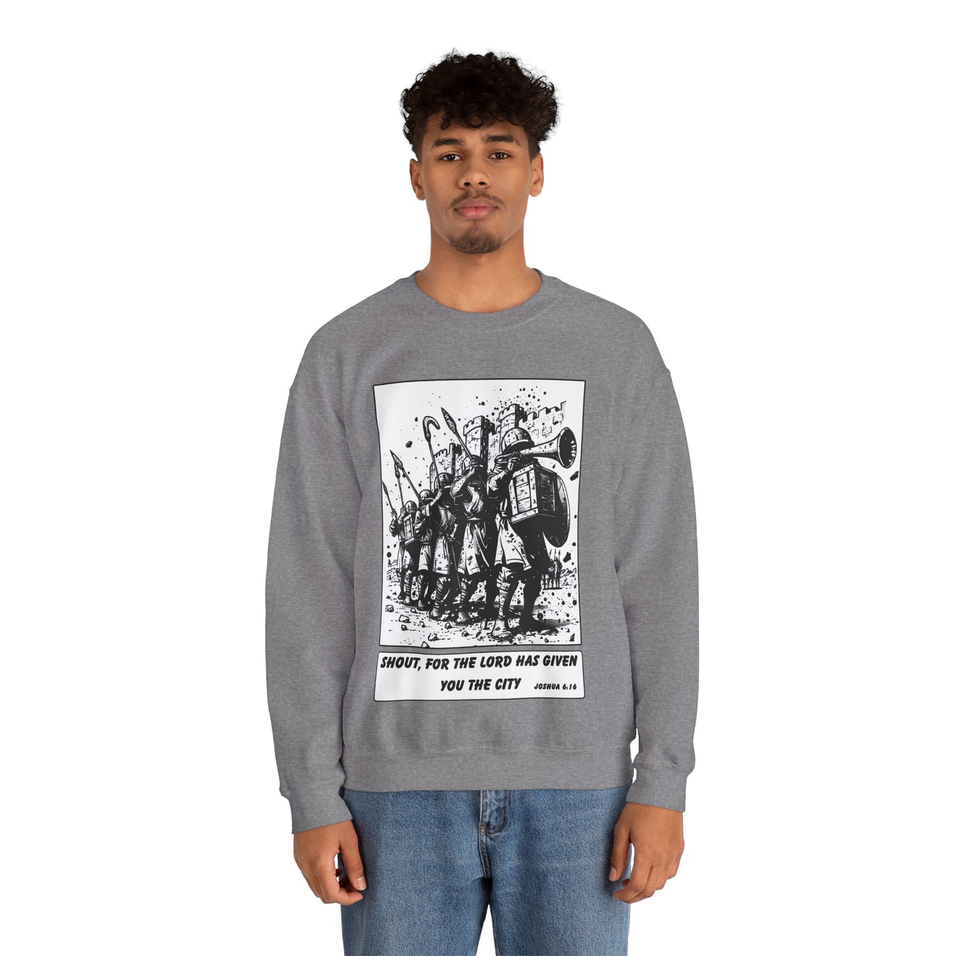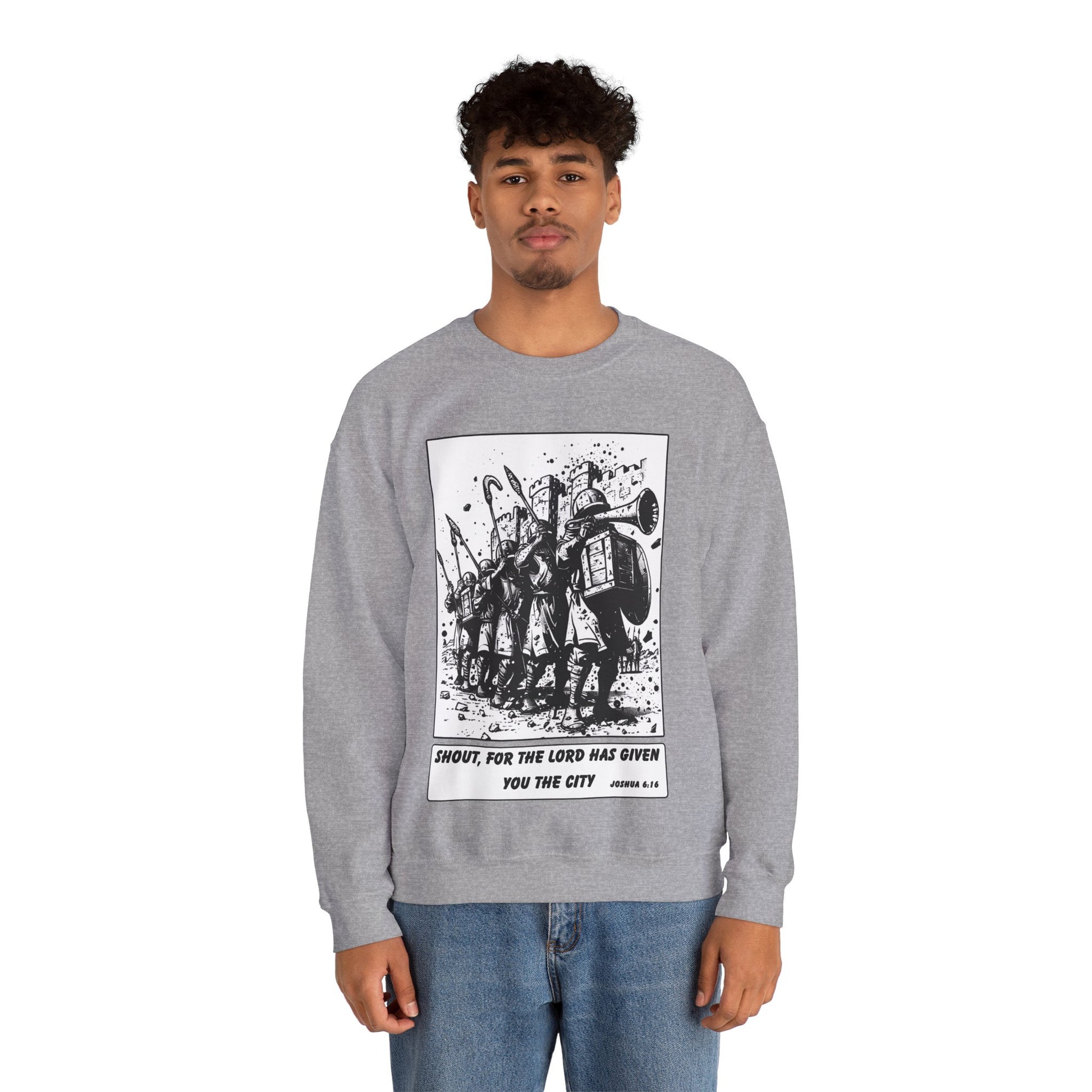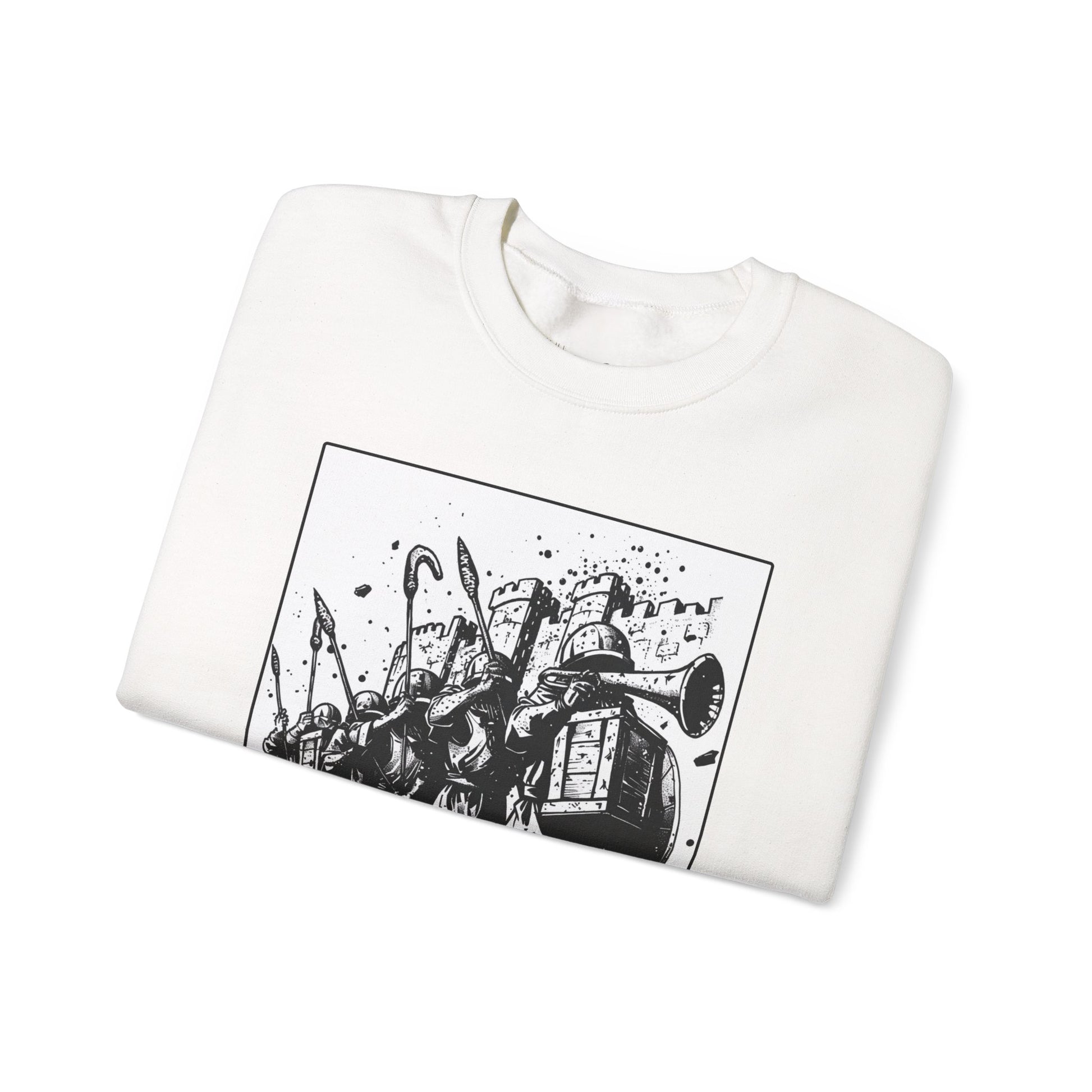 Jericho Sweater – Black & White Faith Ink Panel (Josh 6:16)