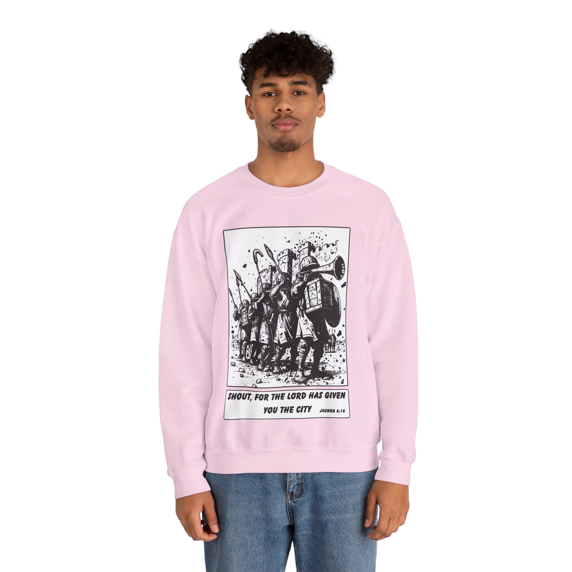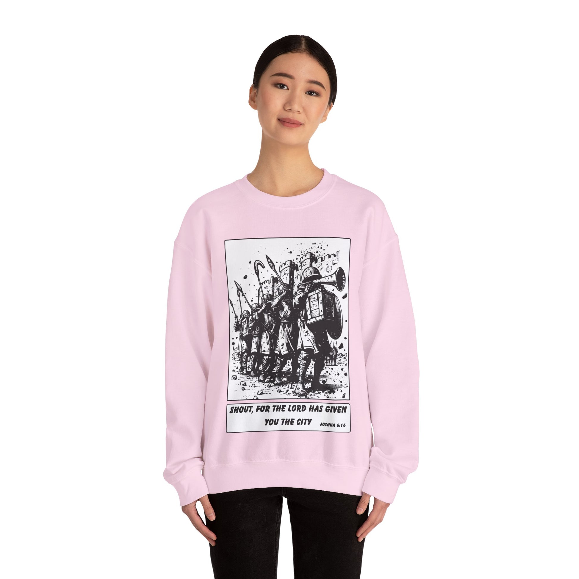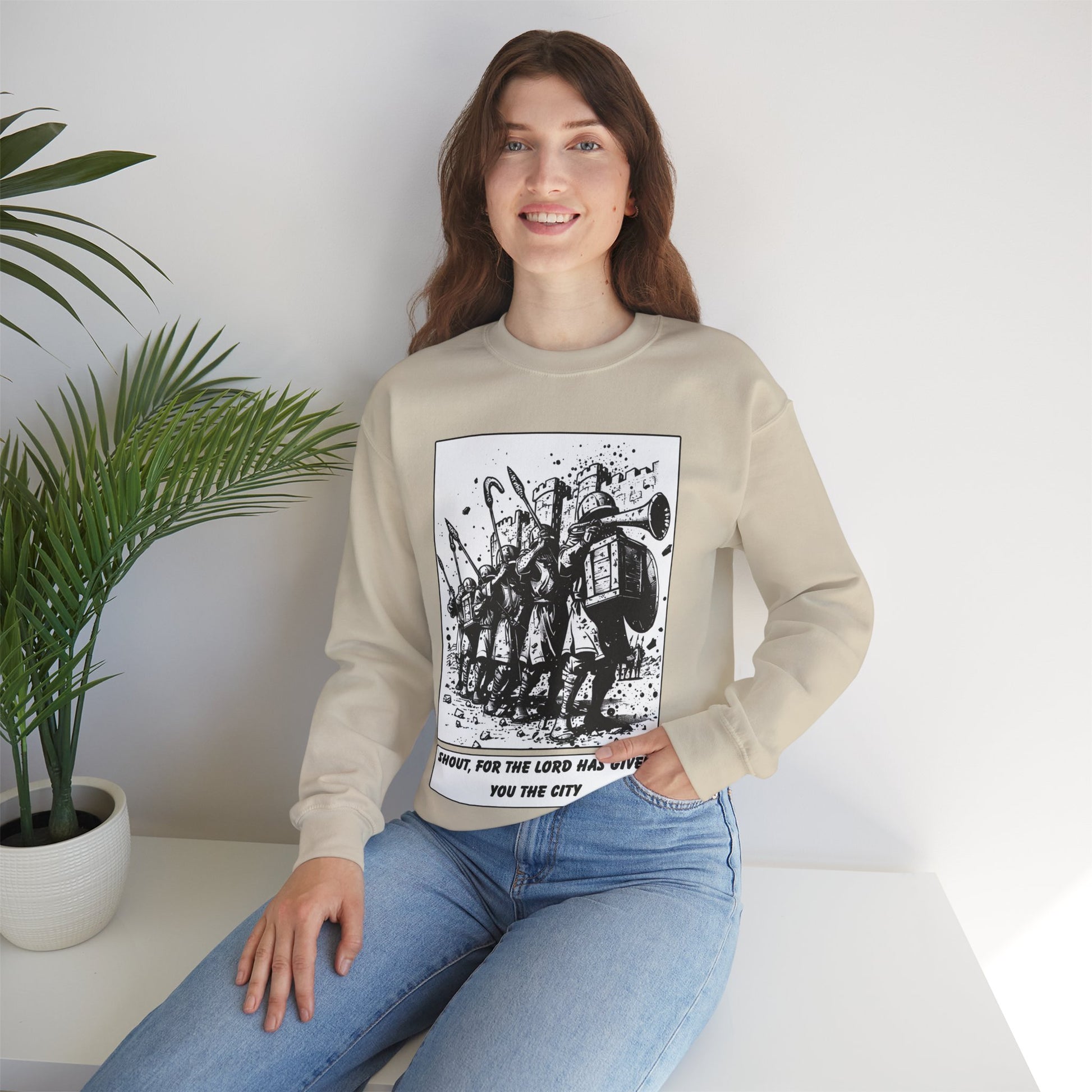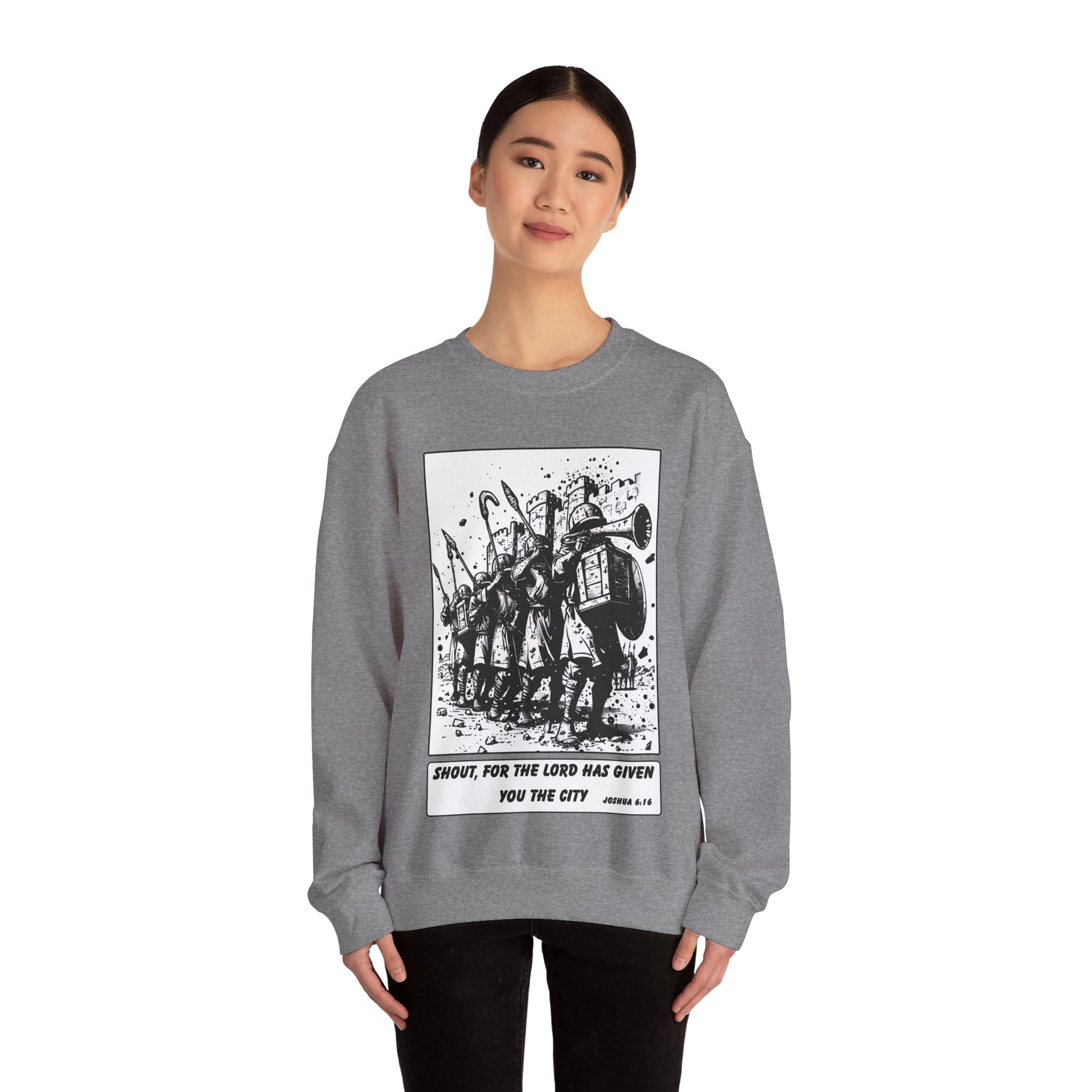 Jericho Sweater – Black & White Faith Ink Panel (Josh 6:16)
