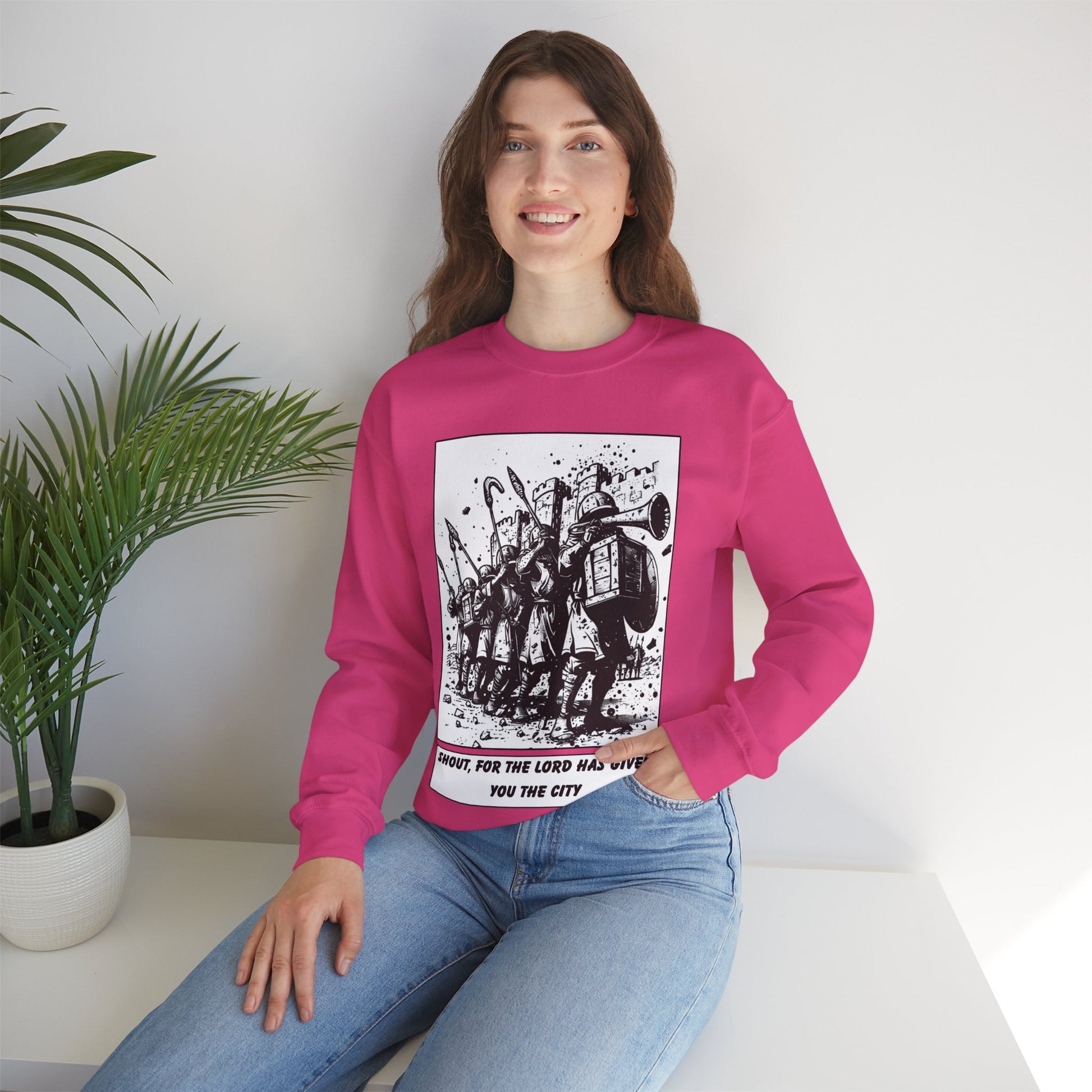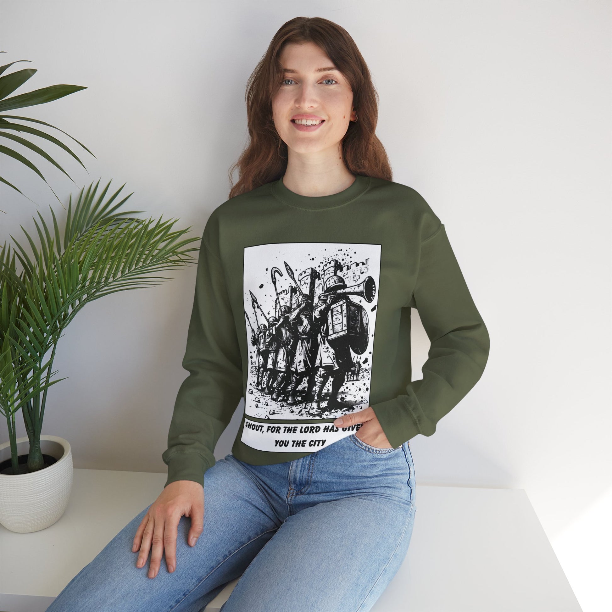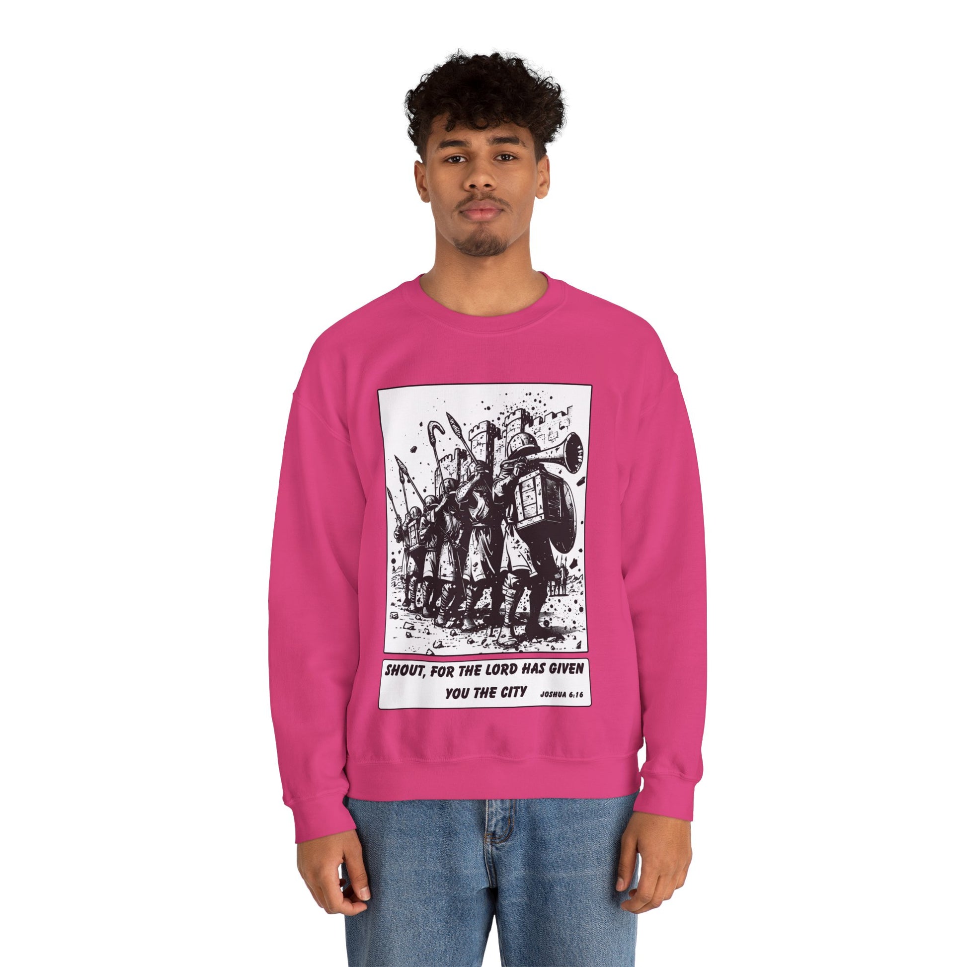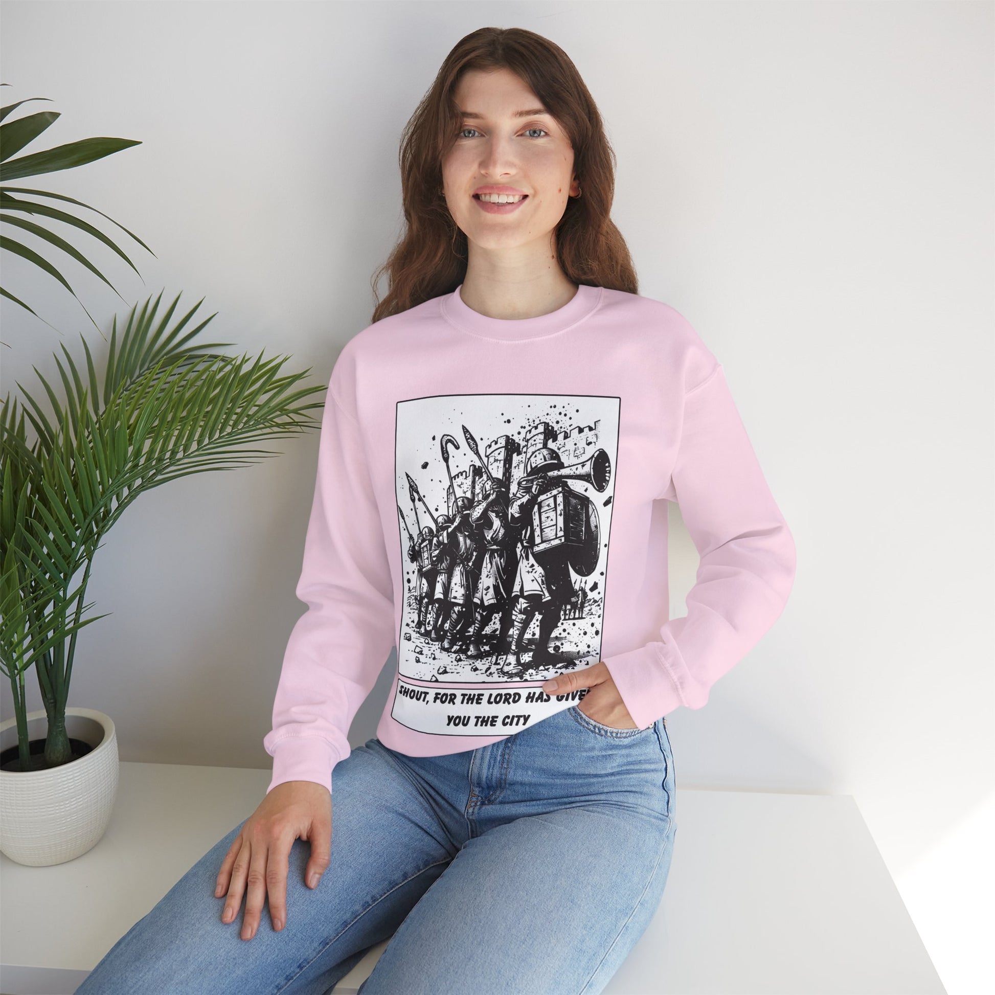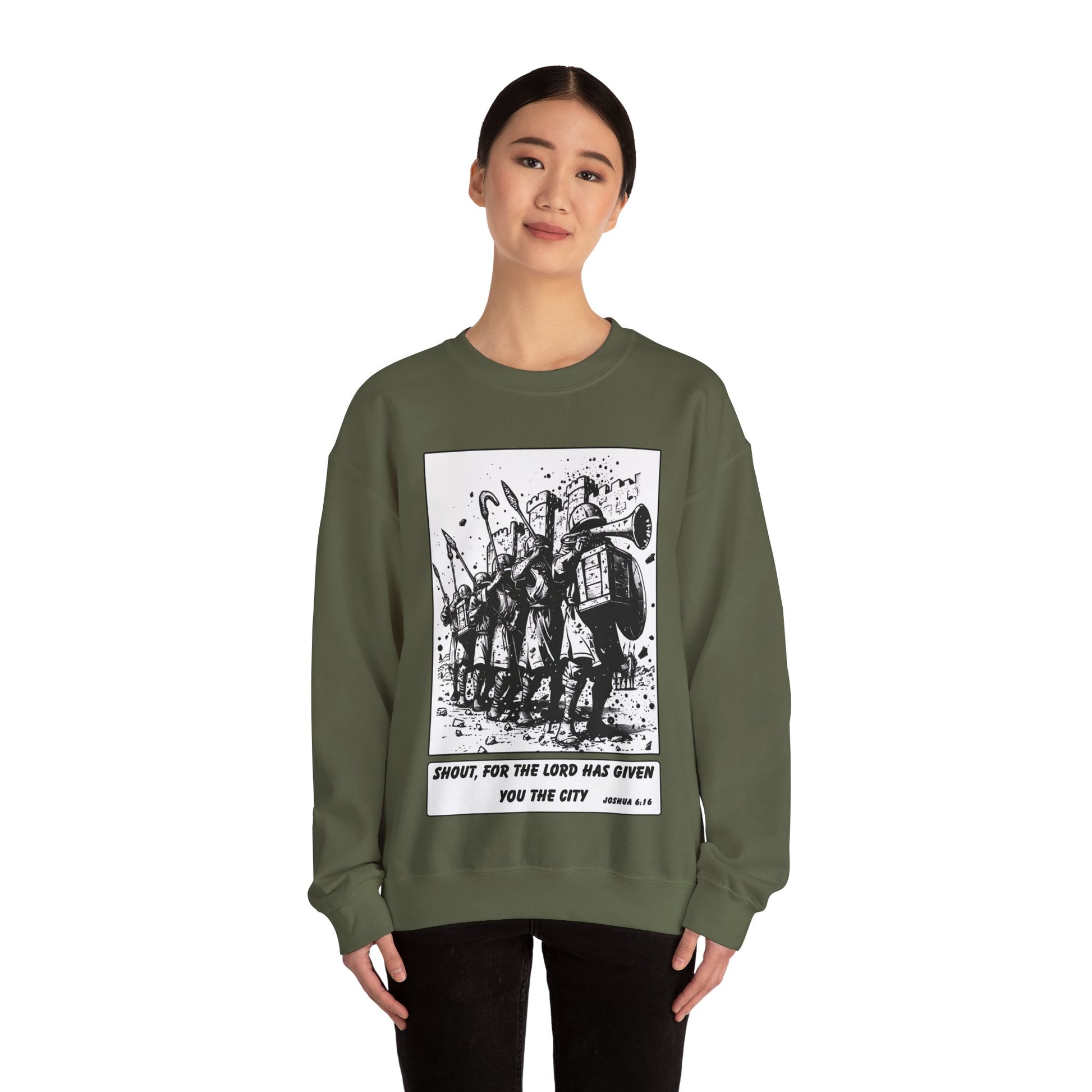 Jericho Sweater – Black & White Faith Ink Panel (Josh 6:16)