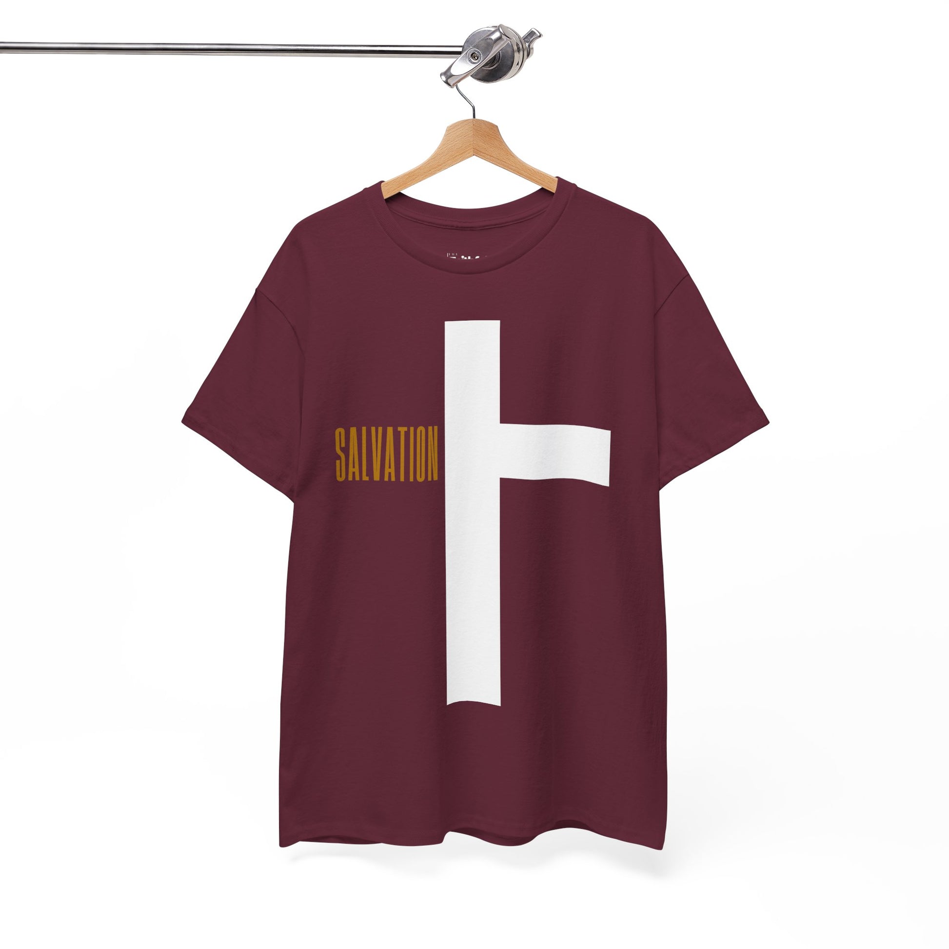 Minimal cross with “Salvation” accent in Light Ink. Subtle, modern, and gift-ready.
