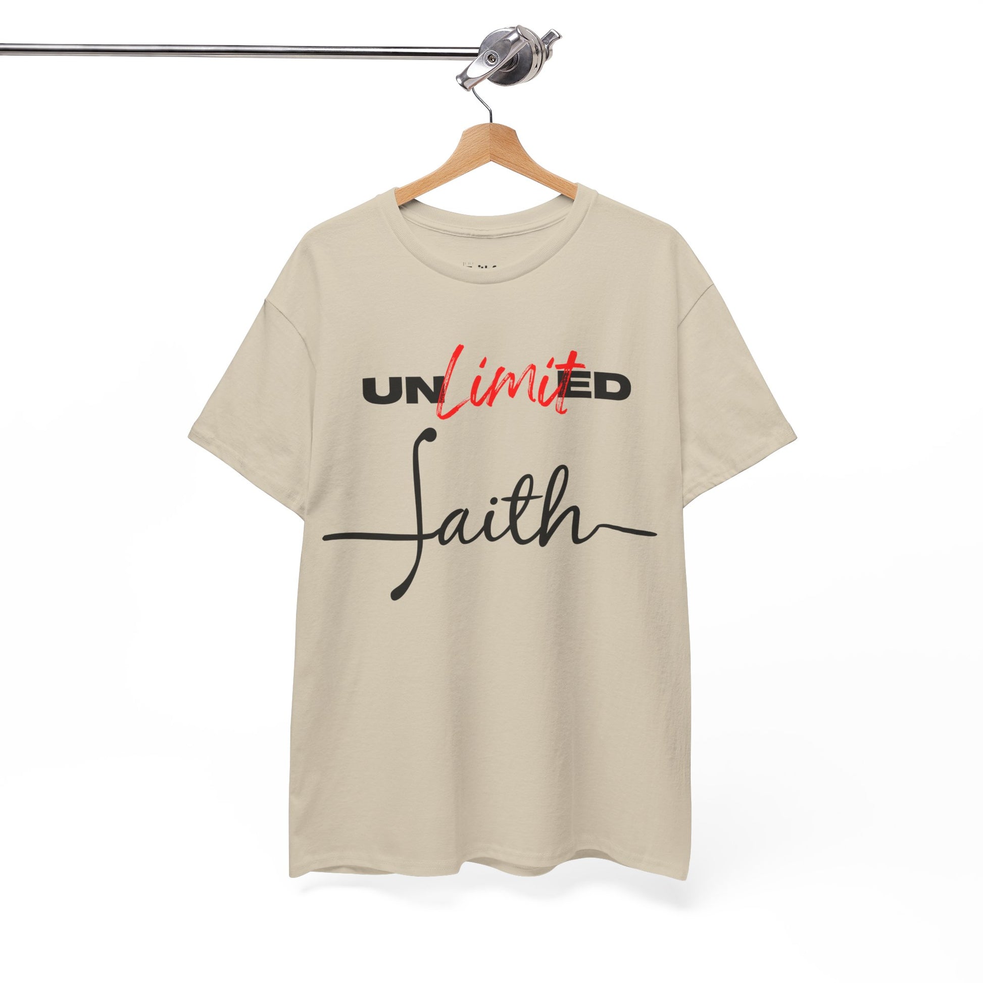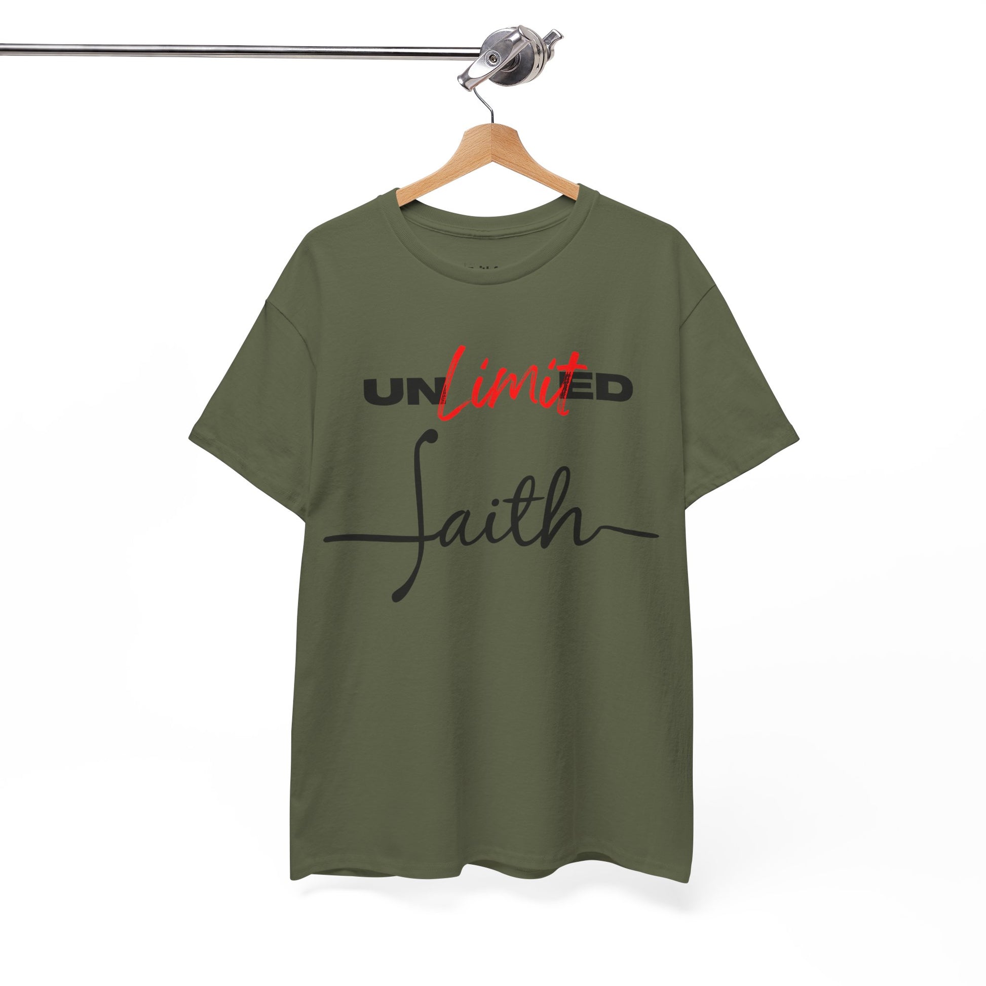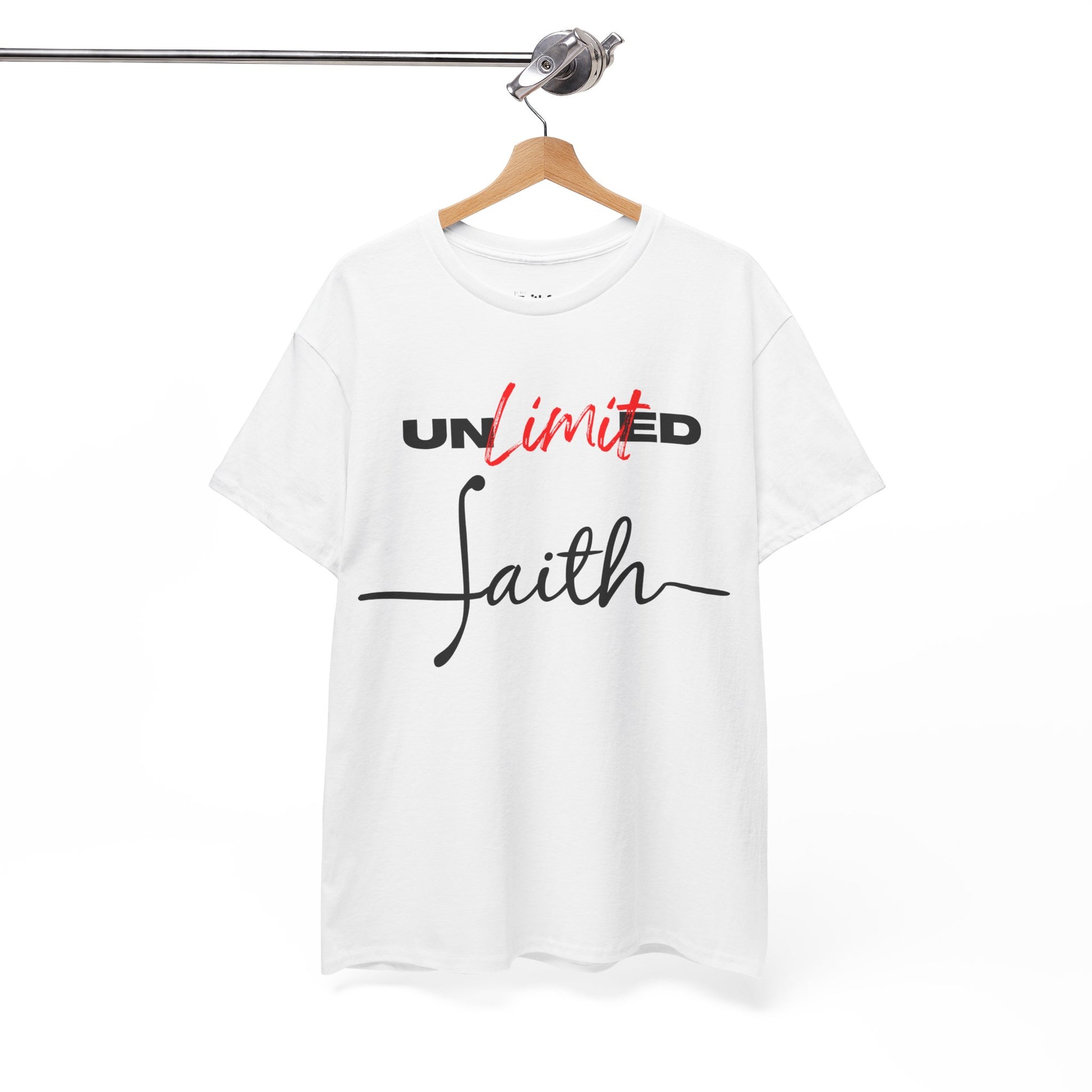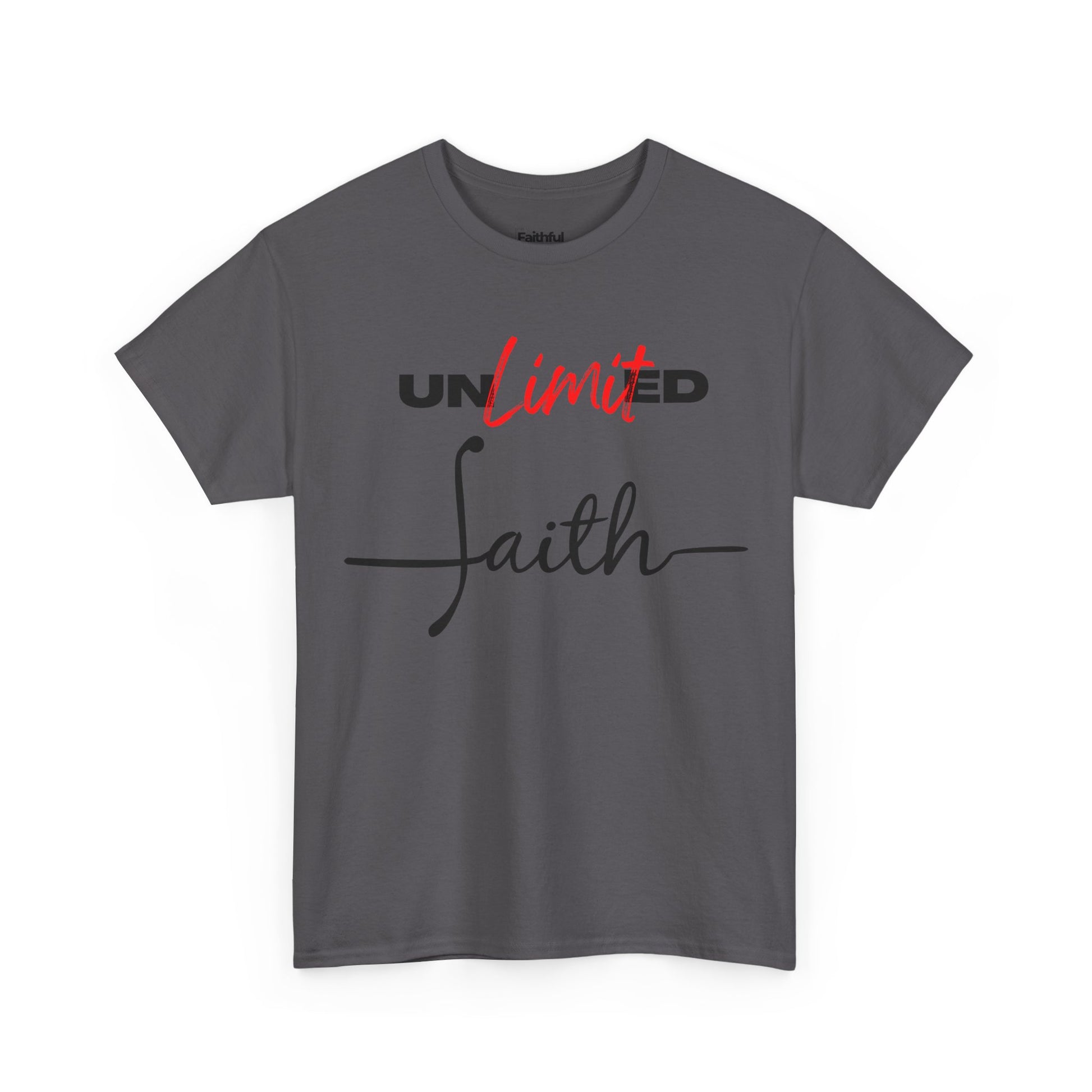 “Unlimited Faith” in Dark Ink. Crisp DTG on light shirts; everyday statement piece.