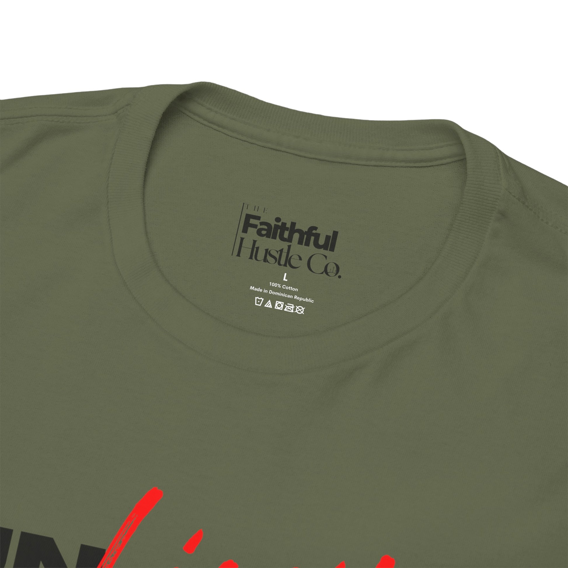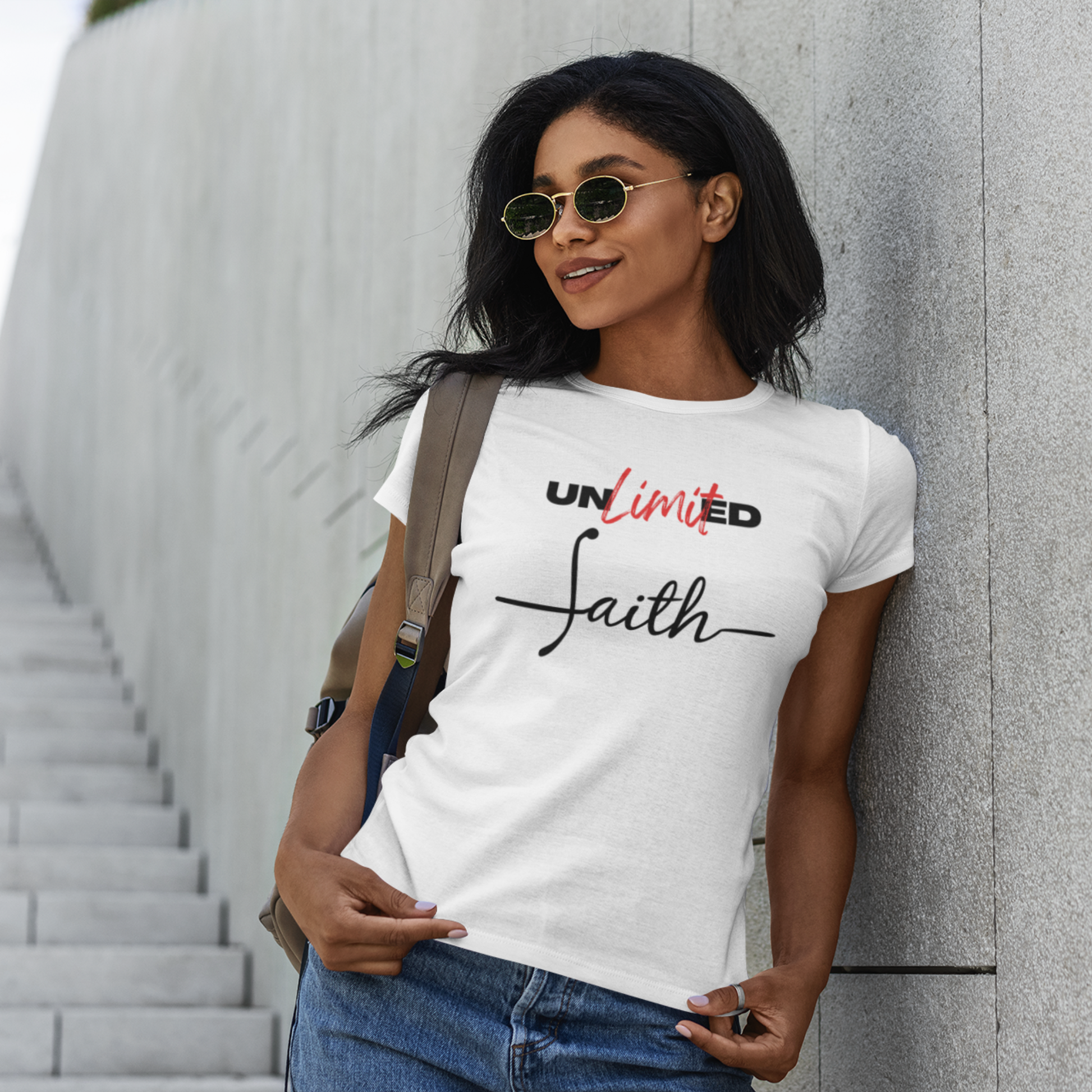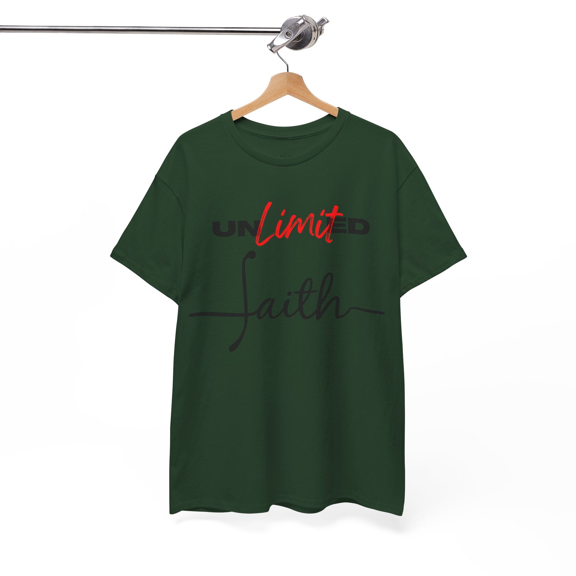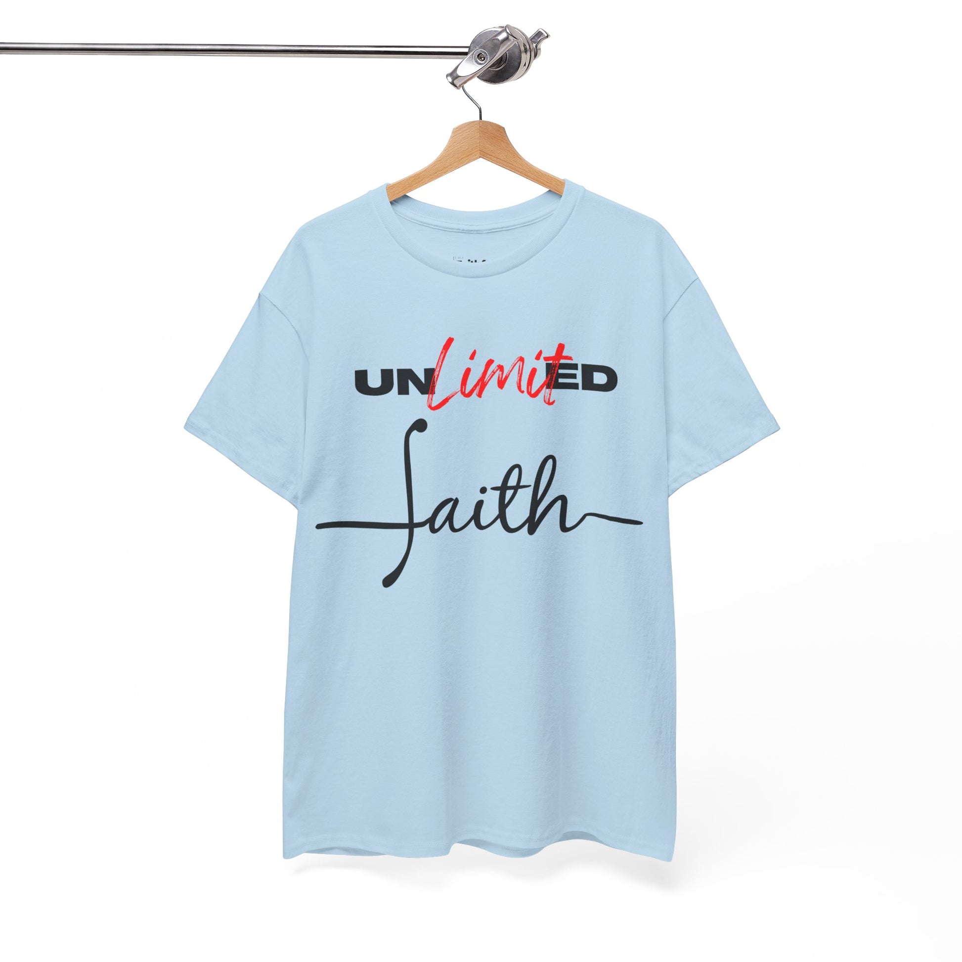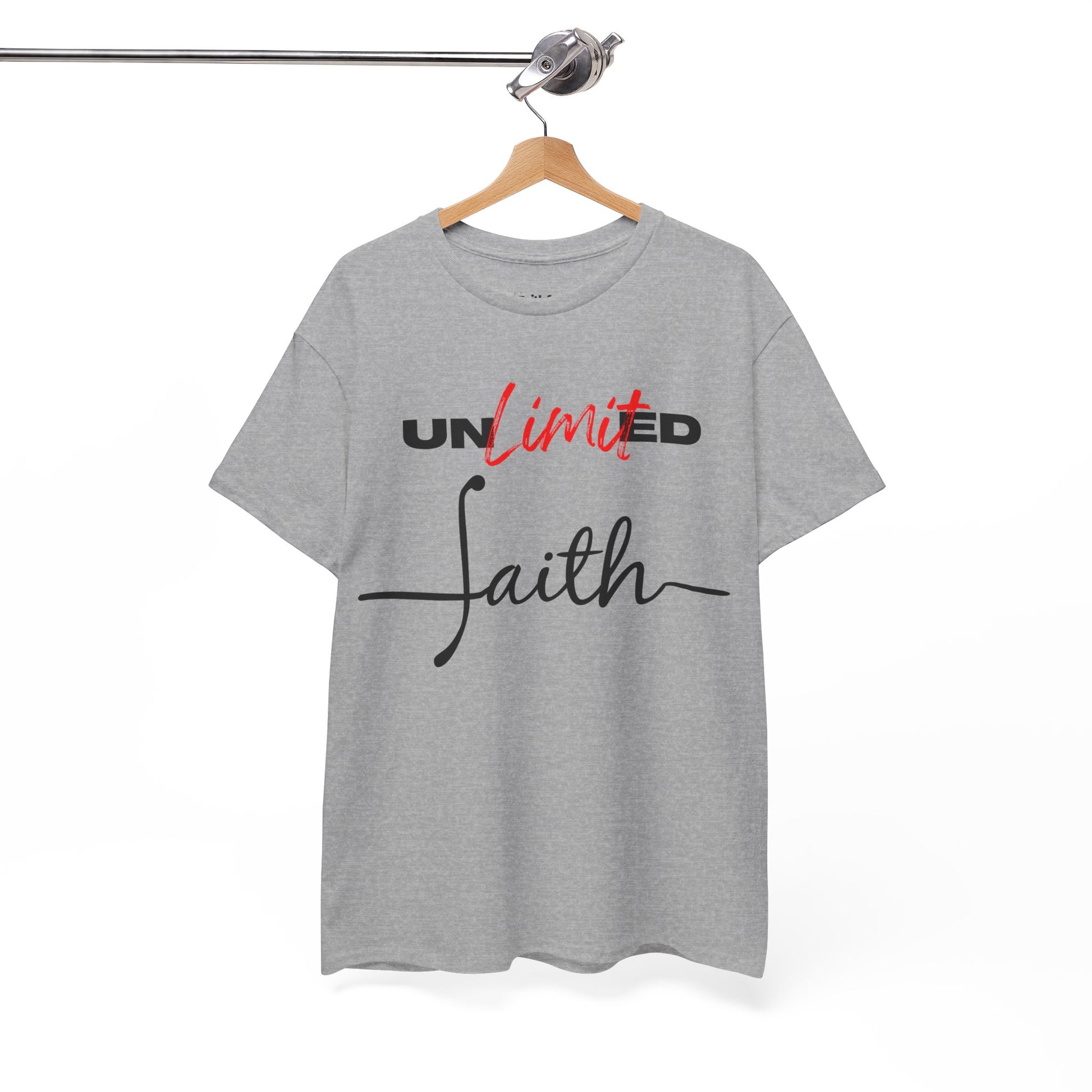 “Unlimited Faith” in Dark Ink. Crisp DTG on light shirts; everyday statement piece.
