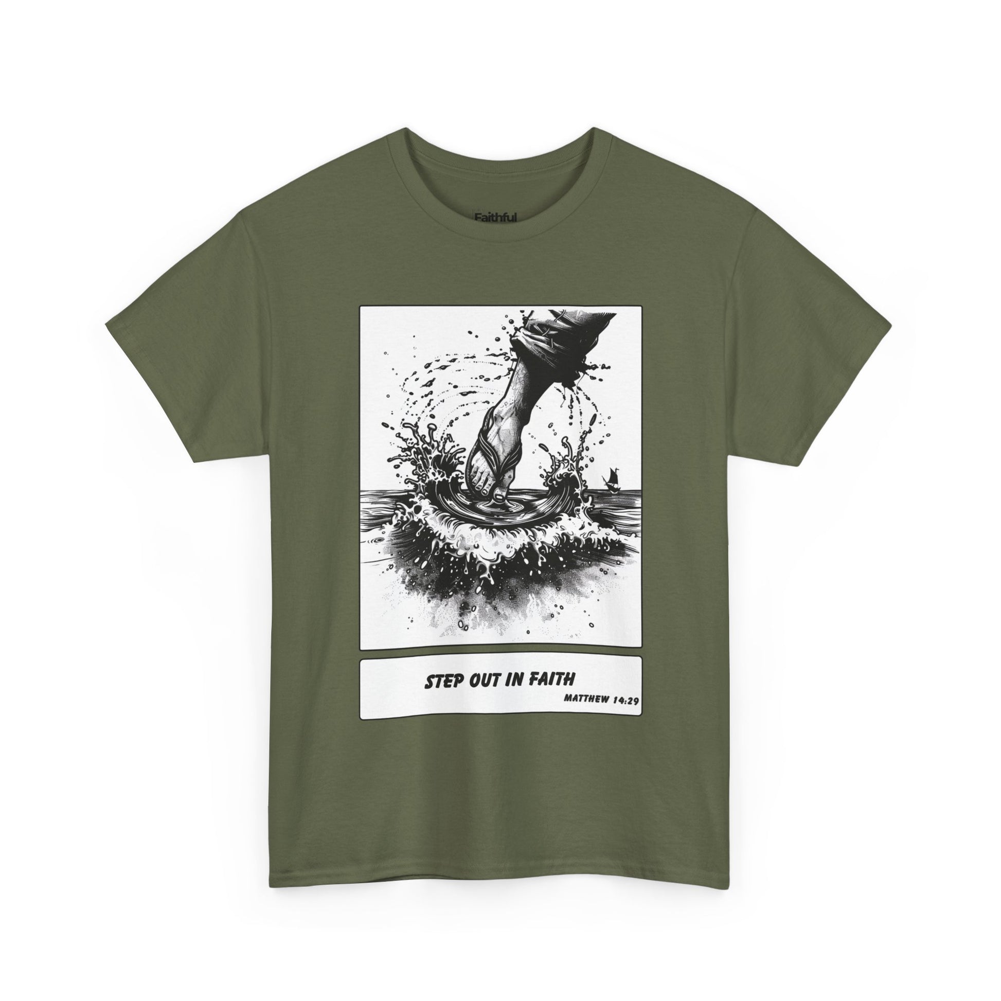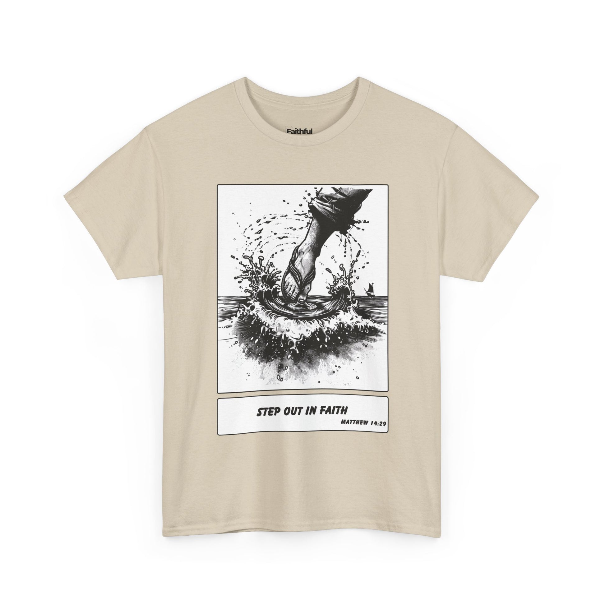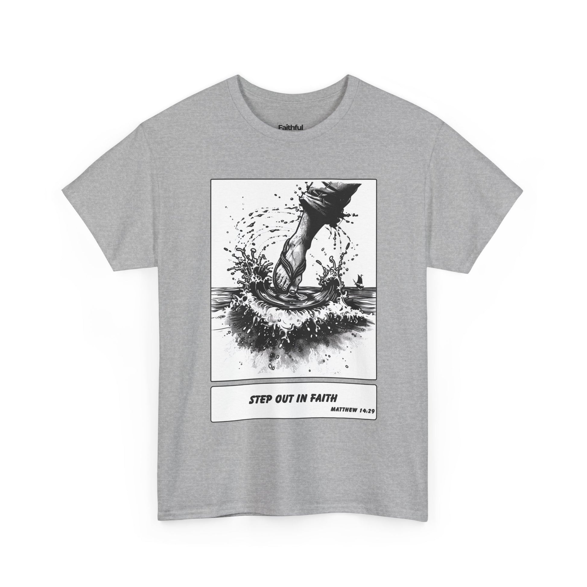 Walking on Water Tee – Black & White Faith Ink Panel (Matt 14:29)