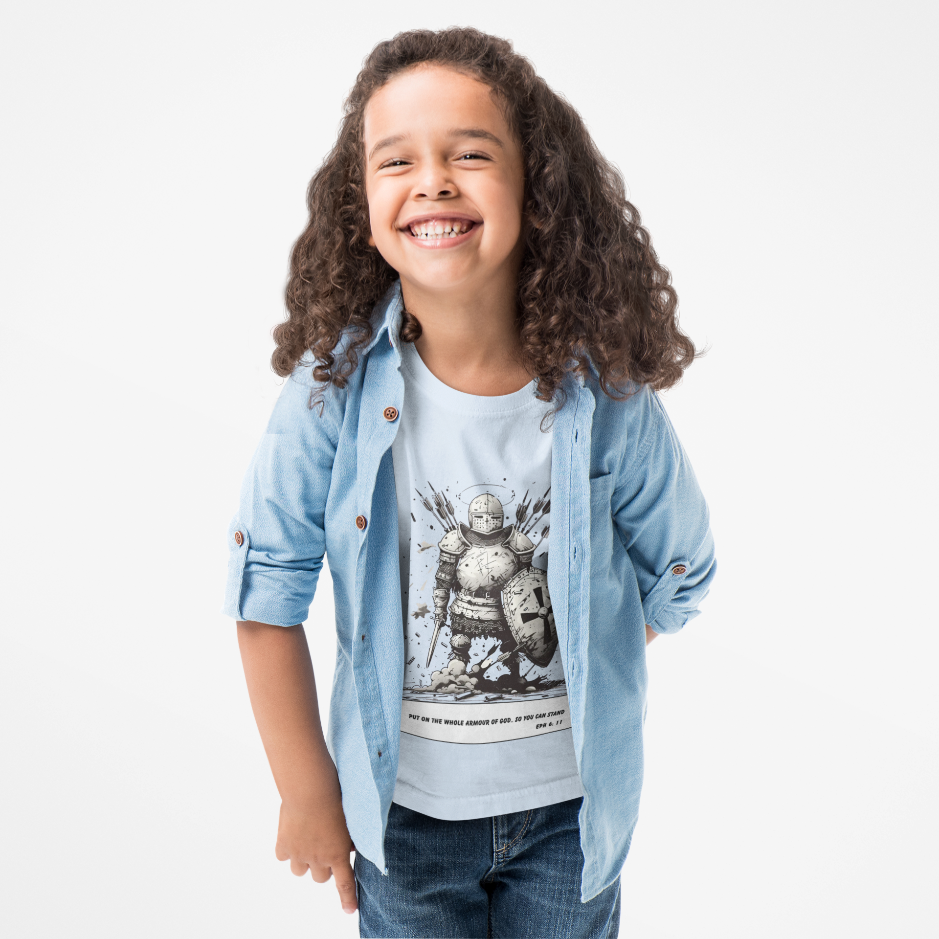 A bold ink-panel of the whole armor of God—made to wear your faith with calm strength.
